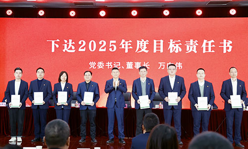 集团党委书记、董事长万向伟代表集团党委、董事会给各单位(部室)下达2025年度目标责任书,并作《推动深化改革 厚植发展动力 为欧美成人视频 高质量发展书写新的时代华章》重要讲话,从“‘国企担当、迎难而上、文化兴企、产业升级、党建引领、行业头雁’风采六个维度彰显杭燃发展的高度、力度、厚度、广度、深度、速度”,全面总结了集团2024年的主要工作成效。万董表示,2025年,要紧紧围绕“以全面深化改革推动高质量发展”的主线,“发展与安全”并重、“社会效益与经济效益”并举,不断书写欧美成人视频 高质量发展新篇章。并在此基础上重点提出四个发展目标:一是立足全局,推动全产业链做强做优做大;二是做精做细,构建燃气特色安全治理体系;三是卓越管理,挖潜增效夯实企业内生动能;四是党建强基,凝聚全员干事创业的精气神。