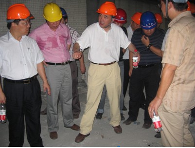 董事长吴晓甦、副总经理金富根等领导陪同下,对煤气大厦扩建及装修项目工程安全文明施工建设进行检查。