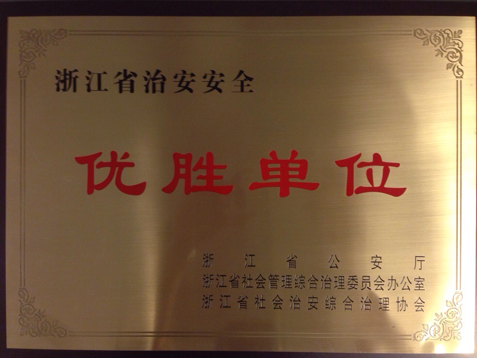 再次被授予2014年度浙江省治安安全优胜单位荣誉称号,这是公司第二年获得此殊荣,是对2014年公司安全防控工作的肯定,也对下一阶段安全防控工作提出了更高的要求。