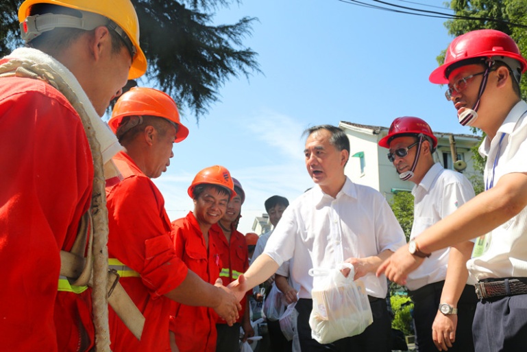 7月30日,市公司总经理章维明一行,在集团公司总经理俞建国、副总经理王东的陪同下,看望慰问奋战在杭钢半山区域天然气转换现场的一线员工。