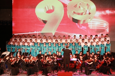 ,在 “城投之夜•市城投集团庆祝中国共产党成立90周年交响合唱音乐晚会”上,“杭燃”合唱团受到大会表彰,荣获银奖。(图为“杭燃”合唱团在晚会上的汇报演出)