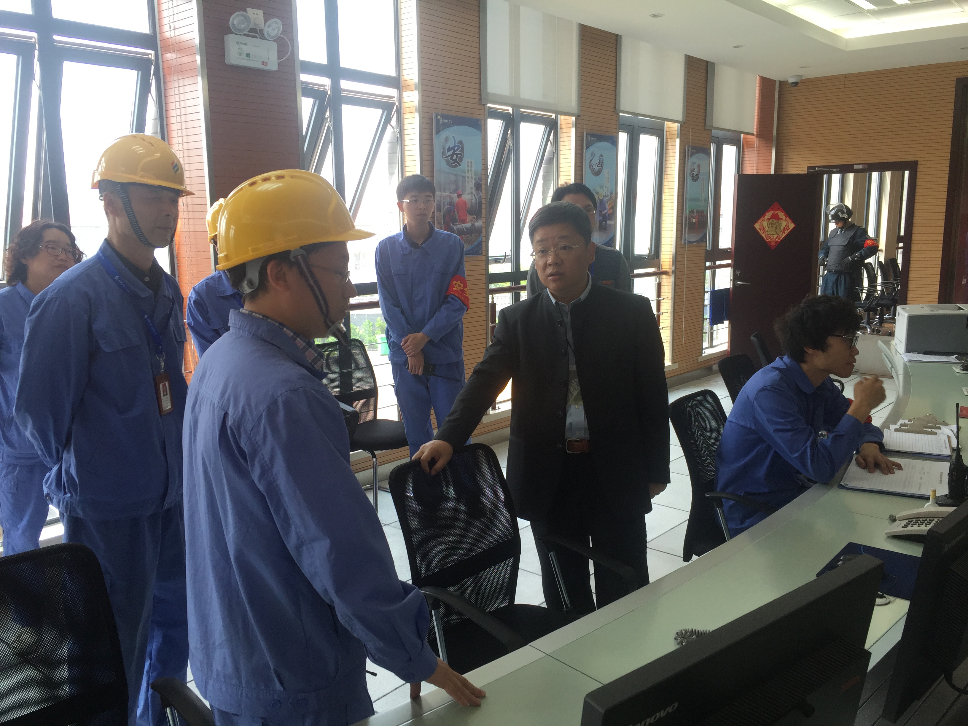 围绕管网设施运行安全、突发事件应急处置、门卫反恐安保以及热线服务管理等工作进行了简单的汇报,吴晓甦副总经理一行实地查看了东部应急气源站保安室、中央控制室、站区以及液化气灌装厂生产区、储罐区,对现场的安保器材一一查看,对生产的关键环节逐一对照,还进一步仔细询问了节日值班安排、应急处置以及员工发展等工作。