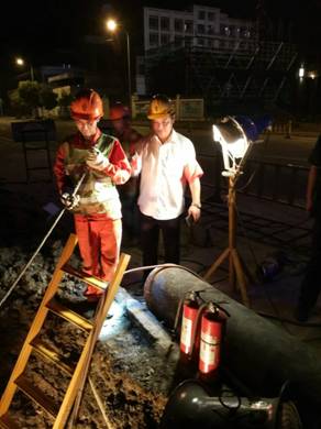 割接当天,胥东董事长亲临现场,详细询问了凤凰公园站工程的概况以及地铁工程涉及燃气迁改的情况。