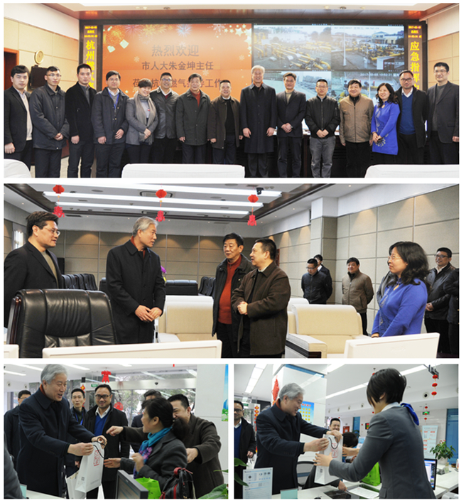 朱金坤副主任一行先后来到天目山路营业厅及应急指挥中心,亲切地与燃气工作人员一一握手,并为工作人员及前来办理业务的市民送上新年礼物。朱副主任询问了春节期间燃气保障工作,集团党委书记、董事长芦俊简要汇报气量供应、应急抢修等情况。朱副主任代表杭州市四套班子领导向节日期间仍然坚守一线的欧美成人视频 全体干部职工表示感谢,祝贺大家新年快乐,并祝欧美成人视频 事业蒸蒸日上。