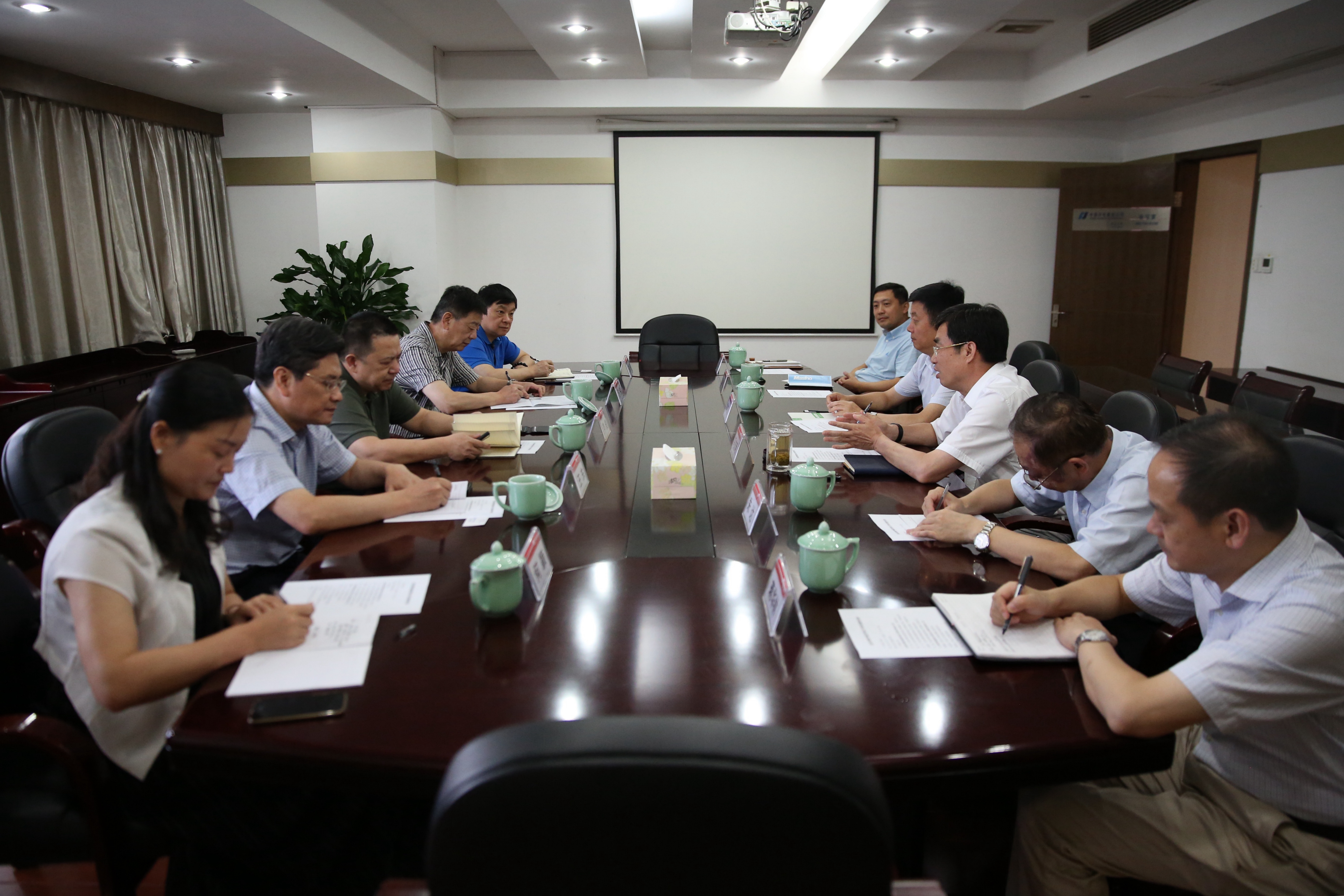 8月9日下午,集团公司党委书记、董事长芦俊一行到华电国际电力股份有限公司浙江公司进行工作交流。华电浙江公司党组书记、执行董事柳邦家,党组副书记、总经理马志明,副总经理熊卓远,杭州华电下沙热电有限公司总经理朱达,集团公司党委副书记、监事会主席汤伟,党委副书记、总经理王东,副总经理汪建平及双方有关部门负责人参加会议。