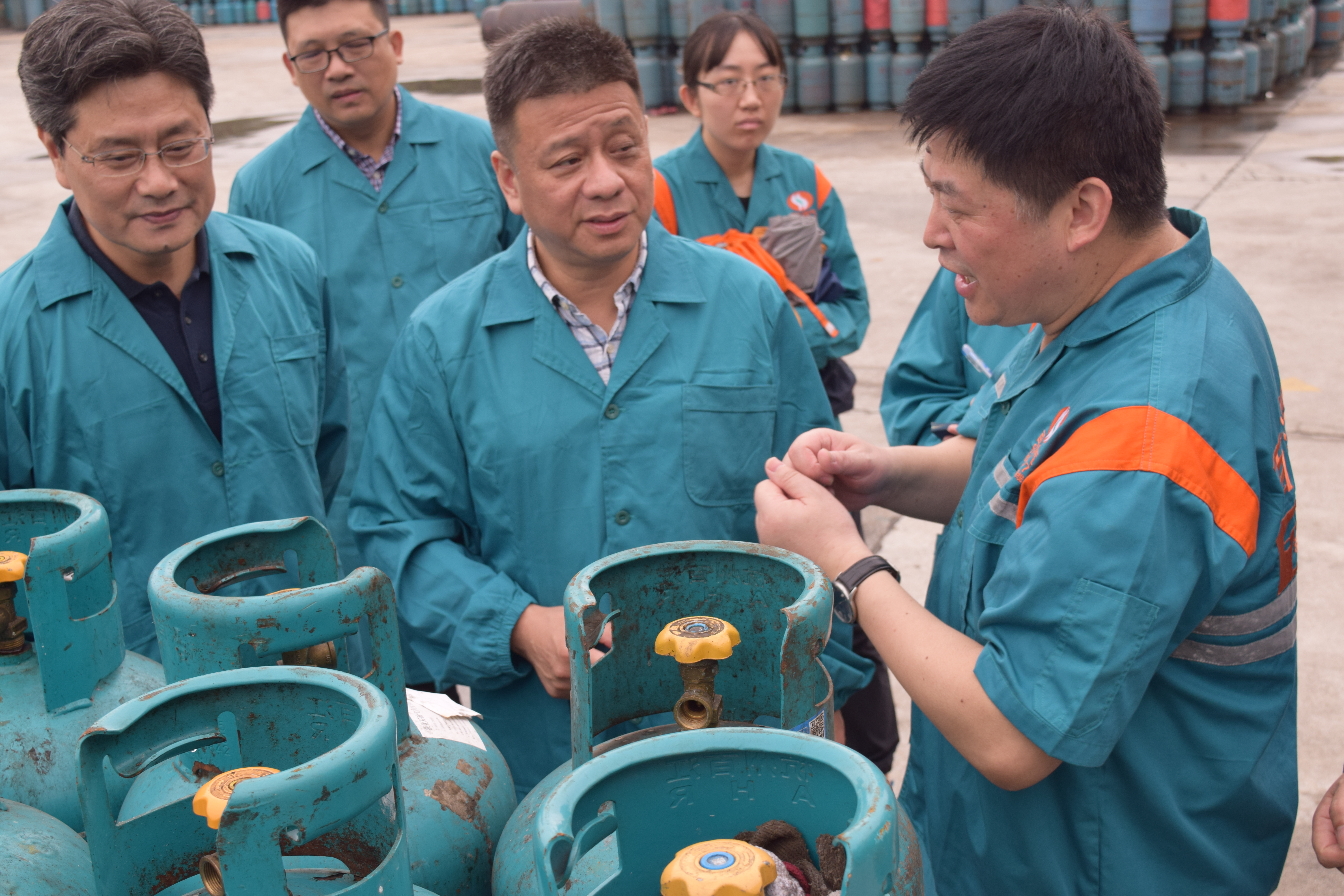 9月27日上午,市城投党委副书记范川、党群工作部副主任俞崇勋到杭州百江液化气东郊灌装厂开展国庆、中秋节前的安全检查和慰问工作。集团公司总经理王东、综合管理部及杭州百江相关人员陪同。