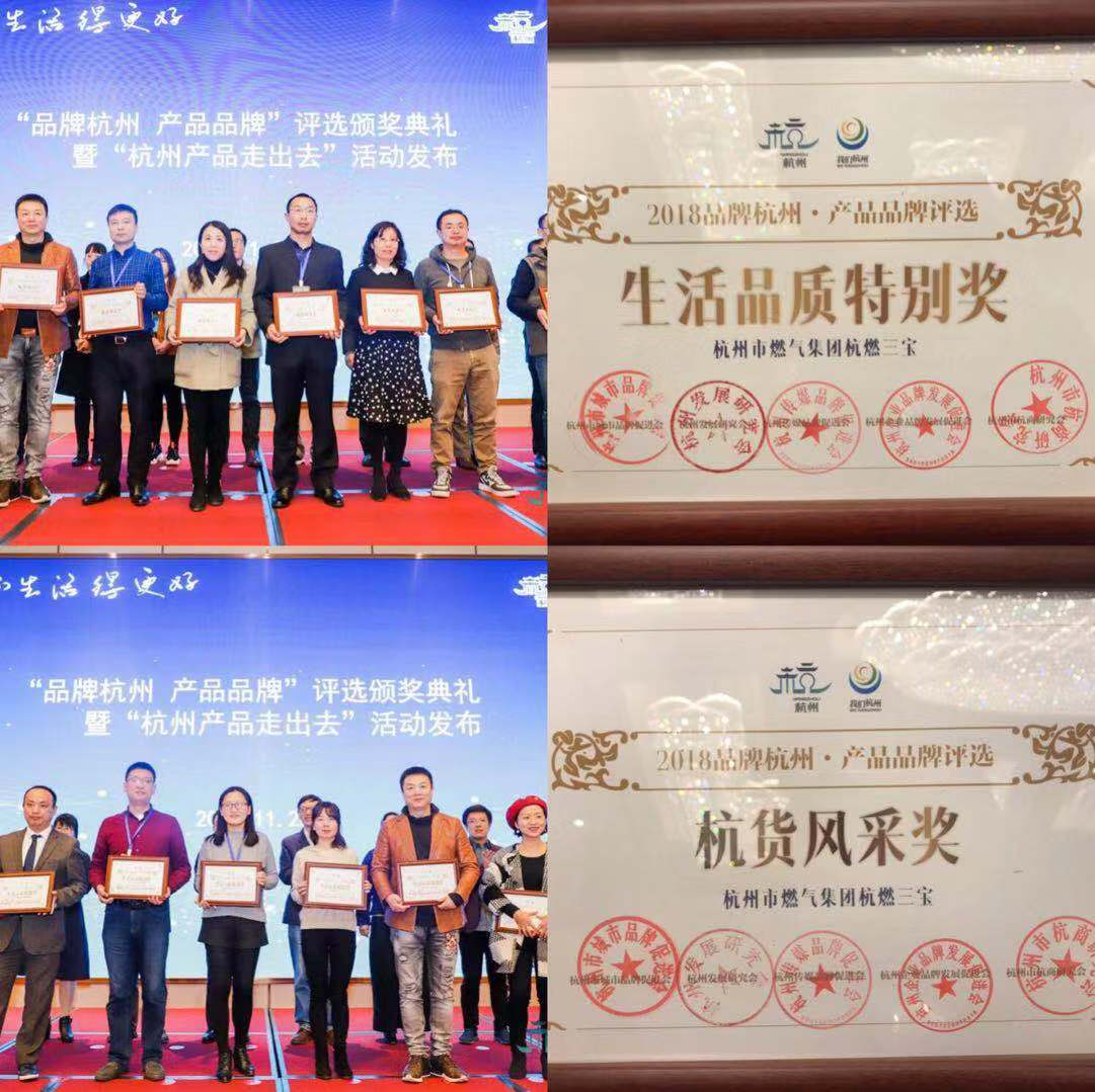 11月28日下午,由杭州市城市品牌促进会联合杭州企业品牌促进会、杭州市杭商研究会、杭州发展研究会和杭州传媒品牌促进会等单位举行的“2018品牌杭州·产品品牌”评选颁奖典礼暨“杭州产品走出去”活动发布会在华盛达雷迪森广场酒店召开。本次评选有230余件产品申报,横跨十余个与日常生活相关的行业,集团杭燃三宝获得“杭货风采奖”和“生活品质特别奖”两项大奖,集团党委书记、董事长芦俊,副总经理朱琴君、综合管理部负责人参加品牌发布会并领奖。