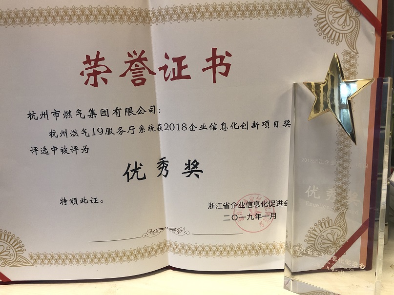 19服务厅系统》荣获2018年浙江企业信息化项目优秀奖。