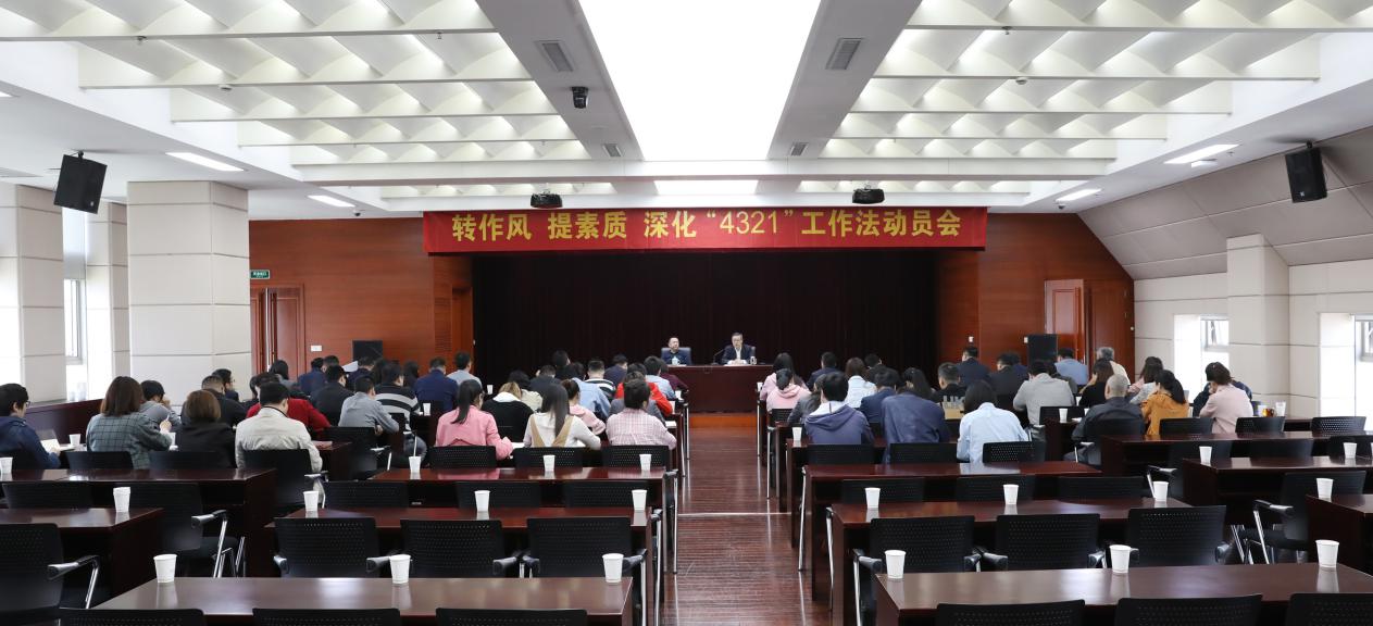 召开集团部室人员深化“4321”工作法动员暨基层管理实践作风建设大会。集团领导芦俊、俞磊,基层相关单位党组织负责人,集团部室全体人员和相关上挂下派人员共计70余人参加会议.会议由党委副书记、纪委书记俞磊主持。