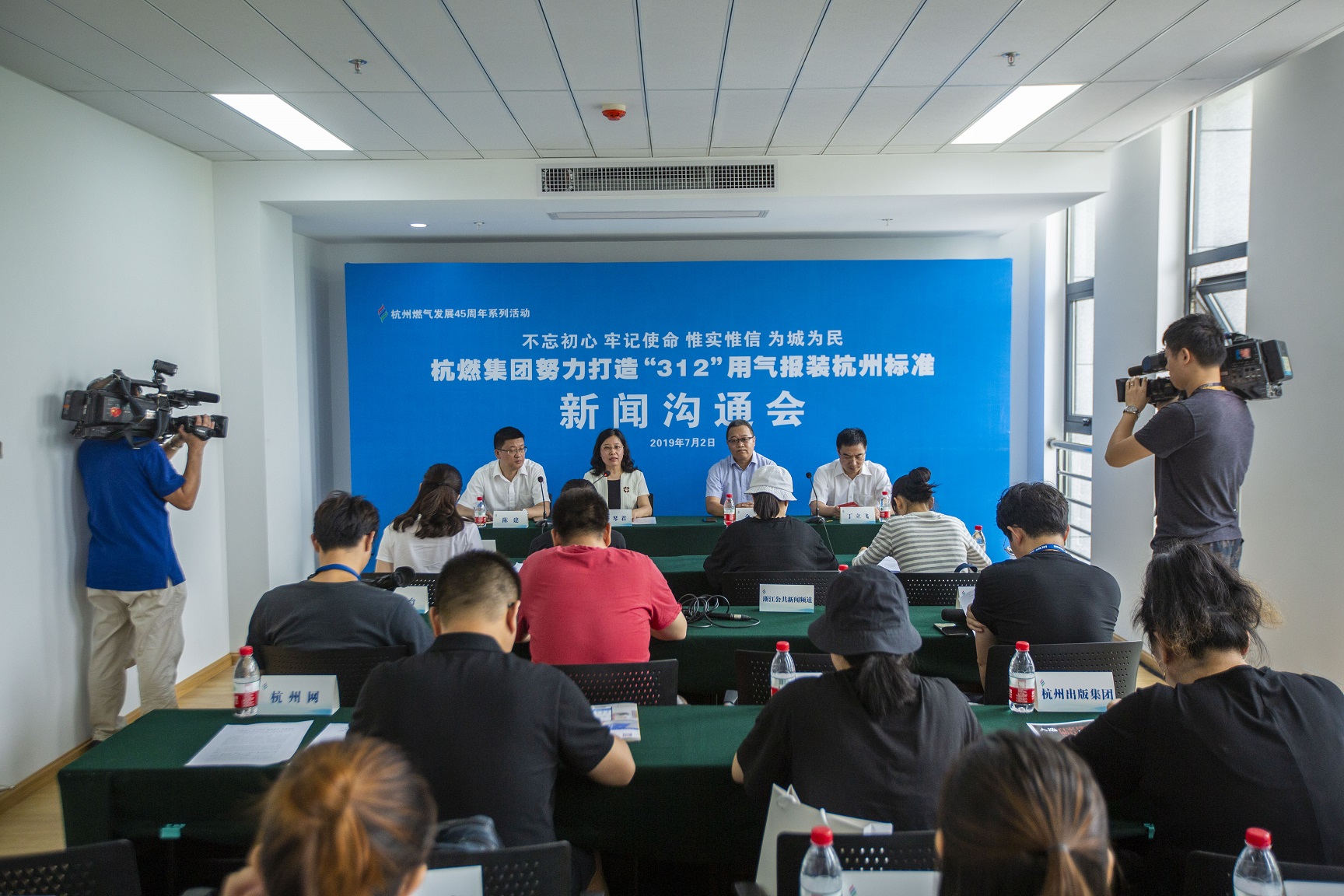 结合45周年系列主题活动举办“杭燃云栖小镇(转塘)综合服务厅启用暨打造‘312’燃气报装杭州标准”新闻发布会,努力为用户提供更安全、更方便、更优质、更具体验感的燃气服务。市城管委市场处处长刘建龙、转塘街道办事处主任郎国伟、市城投集团应急指挥部副部长吴再腾、参建单位杭州华野建设工程有限公司副总经理罗杰、转塘街道用户代表孙校校和社区代表俞杏仙受邀出席,集团领导芦俊、卢智宏、金富根、俞磊、王忠平、朱琴君、俞峻及办公室、建设发展部、综合管理部负责人,杭天公司经营班子及相关单位负责人,服务厅全体进驻人员、特勤队等共计80余人参加。12家省、市媒体现场报道。本次发布会由集团党委副书记俞磊主持,副总经理朱琴君作新闻发布。