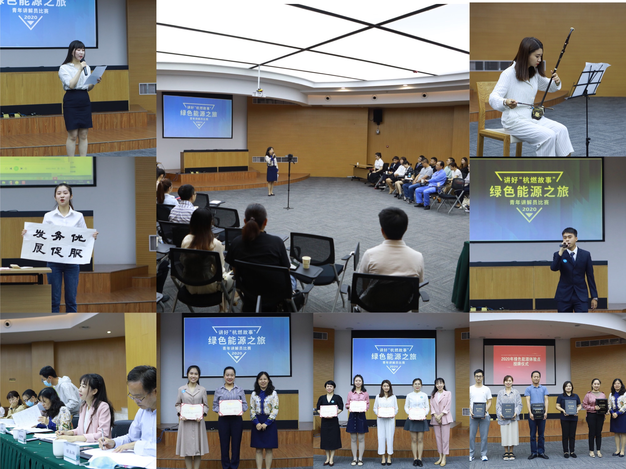 演讲比赛结束后,绿色能源体验中心向集团所属各单位21个体验点授予“杭燃体验绿色能源体验点”认证牌,各体验点接牌负责人纷纷喊出自己争创口号:“精益求精、持之以恒、匠心品质、薪火相传”、“汇聚劳模典范,传承调压技艺,争创一流大师工作室!”、“三吴行尽千山水,犹道桐庐景情美,优质服务暖人心,桐庐杭燃欢迎您!”……