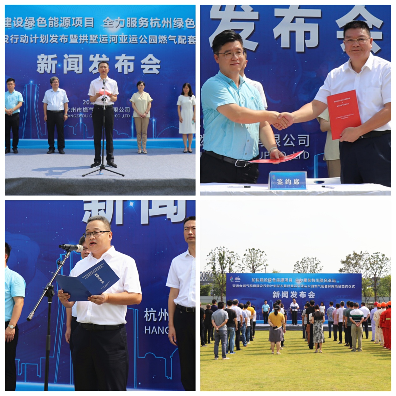 9月9日,是2022杭州亚运会倒计时两周年之际,集团组织召开“加快建设绿色能源项目 全力服务杭州绿色亚运——亚运会燃气配套建设行动计划发布暨拱墅运河亚运公园燃气配套保障项目签约仪式”新闻发布会。杭州亚组委场馆建设部副部长陆春江、副处长李沈飞、片组负责人胡黄蔚,市建委地空管线处副处长陈莉钧,市城投集团工程建设部部长金兴平,拱墅运河亚运公园项目副总指挥韩国利,蓝城杭亚文体发展有限公司总经理刘宓,欧美成人视频 党委副书记、副总经理朱琴君,副总经理王忠平、俞峻,杭天公司副总经理刘元清等领导嘉宾出席,11家省市媒体现场报道。
