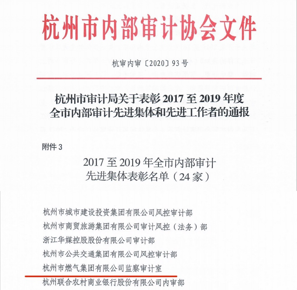 近日,欧美成人视频 获得杭州市审计局颁发的杭州市2017-2019年内部审计先进集体和内部审计先进工作者荣誉。这是继获得浙江省2019年度“内部审计结果运用”典型经验评比三等奖、杭州市2019年度“内部审计结果运用”成果评比一等奖的基础上再次获奖,这些荣誉是上级审计部门对集团公司内审工作的充分肯定。
