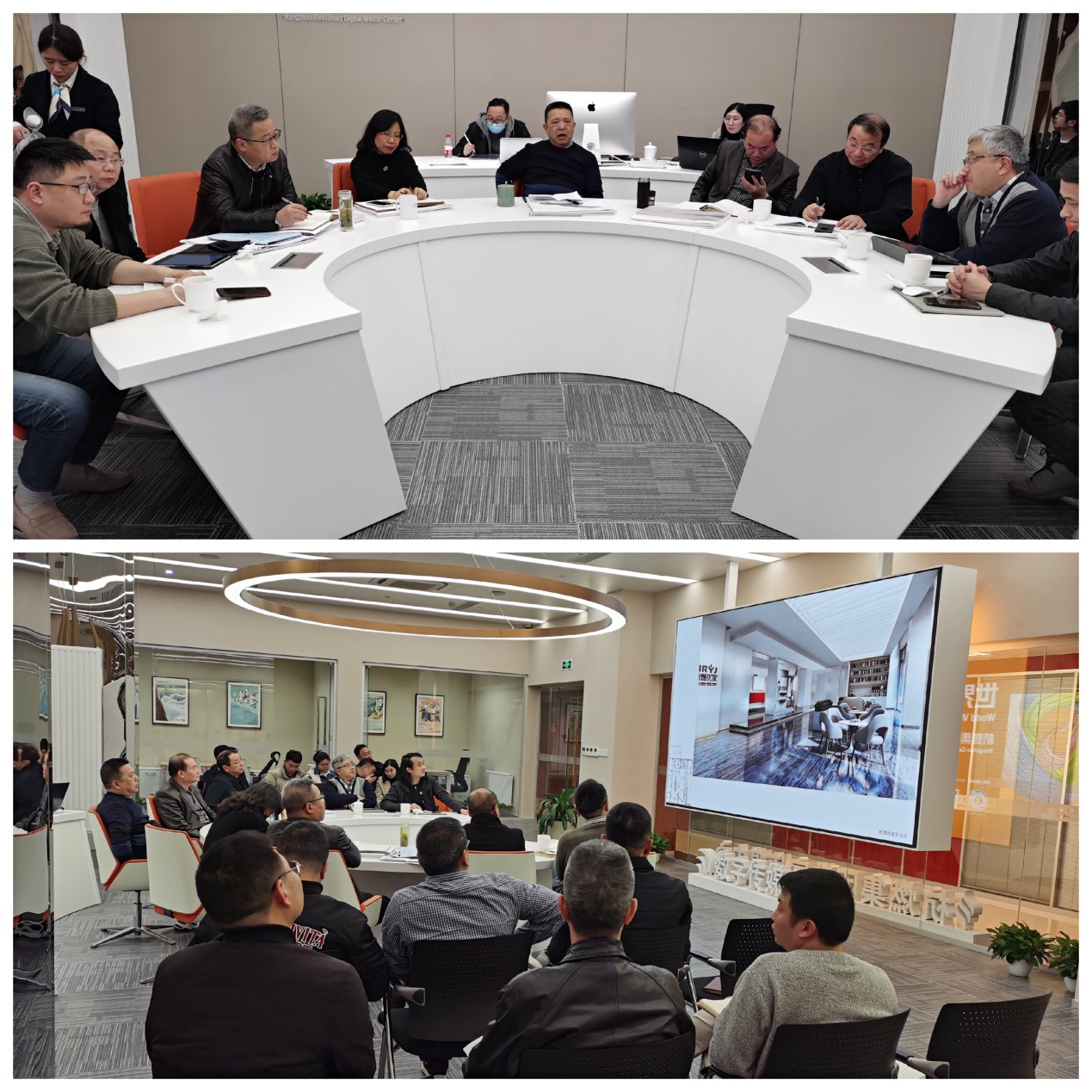 会上,设计单位汇报皋亭山液化气(LPG)产业研发中心、滨江大楼、大江东LNG能源中心、萧山机场分布式能源项目的景观空间、平面布局及装修概念方案。卢智宏、朱琴君、俞峻提出具体要求和建议。