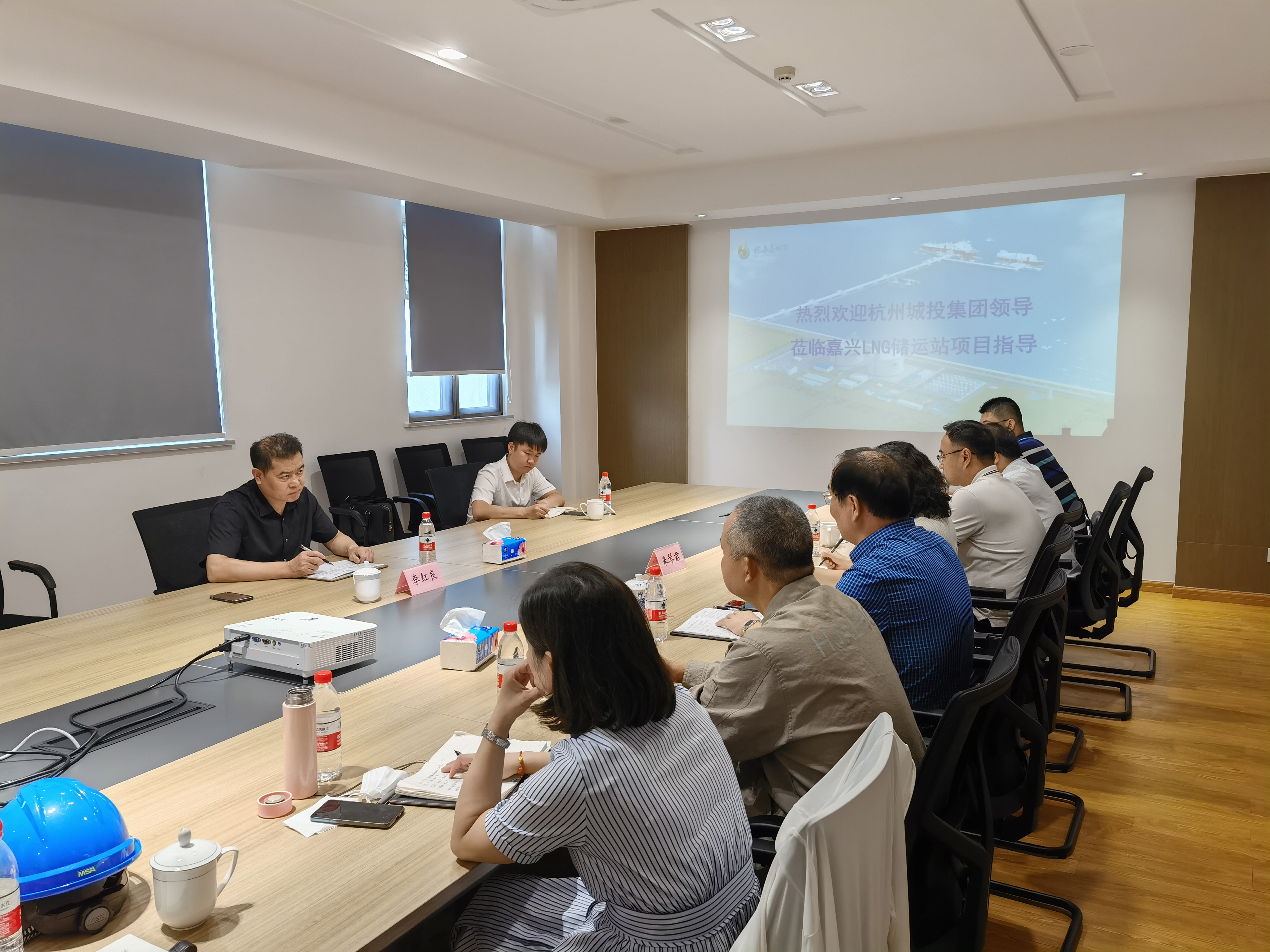 李总一行参观了嘉兴储运站码头工程施工现场、LNG库区并在会议室座谈交流。杭嘉鑫孙连清总经理详细汇报了项目基本情况、建设历程、投产进度、LNG上游资源采购及当前工作要点。朱琴君对孙总带领杭嘉鑫公司全体员工历时五年攻坚克难推进项目建设表示感谢,并表示杭燃、嘉燃双方股东应继续多交流多沟通,共同应对国际天然气供应局势,推动杭嘉鑫、杭嘉液公司良性发展。