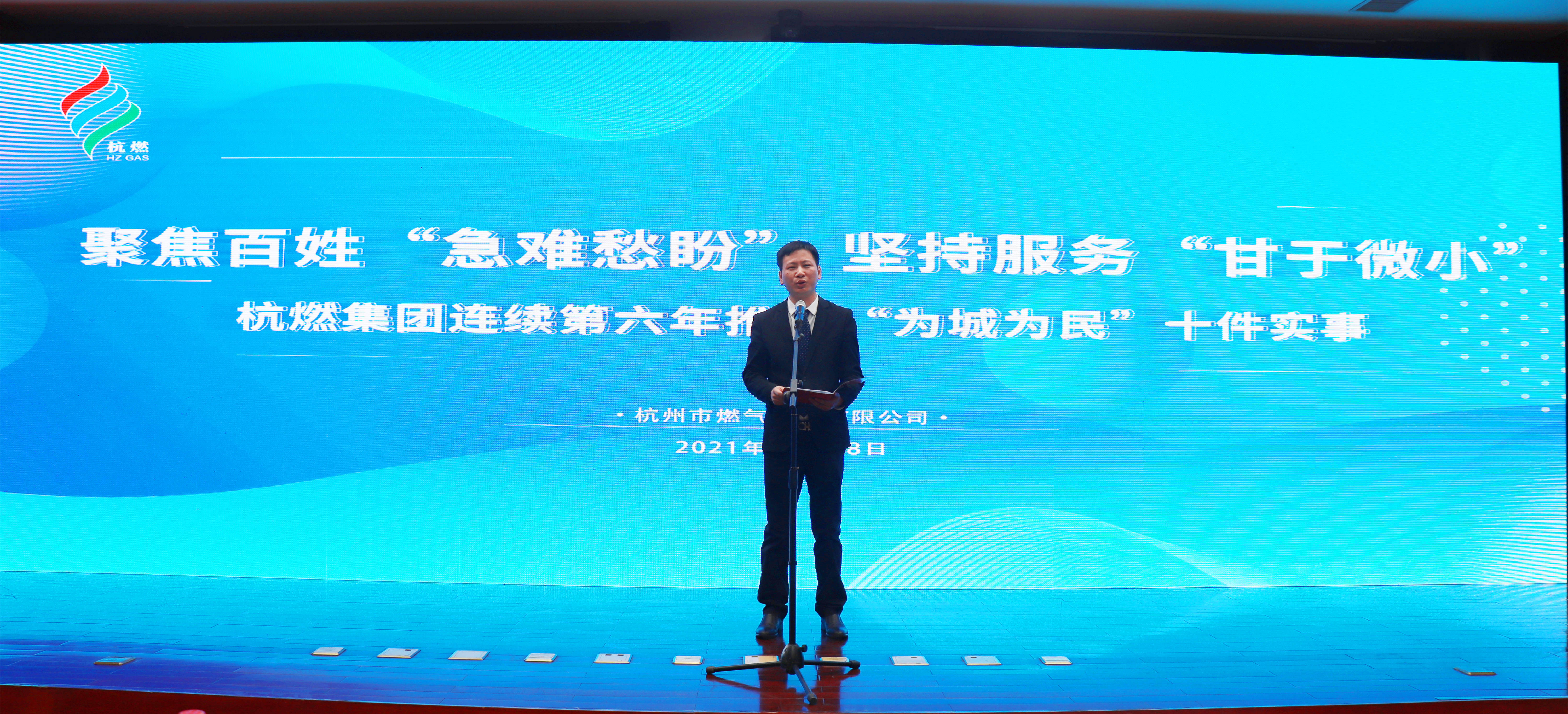 自2017年第一次公开发布十件实事以来,五年五十件实事主要成果;其次重点向社会公开发布了2022年“为城为民”十件实事:一是打造安全工程,完成50处老旧管网铸铁管改造和6万根橡胶管更换,提升管网运行安全。二是打造民生工程,完成十个(处)老旧小区管道气通气。三是打造绿色工程,实现萧山国际机场分布式能源项目“绿色能源工厂”建成投运。四是打造燃气下乡工程,实现市域天然气高压管道建德全覆盖,建成启用绿色能源站十座。五是打造数智工程,完成20万只民用户智能表升级更新换代工作。六是打造共享工程,建成启用滨江“杭燃优家共享空间”。七是打造公共服务均等化工程,推动燃气行业“扁平化、规模化”健康发展,实现“一城一网一企”让更多杭州西部县市区市民共享“同城同待遇同服务”。八是打造温暖工程,继续推出一万套南方分户式供暖惠民套餐服务。九是助力绿色亚运,建成启用杭州首座氢能综合能源站。十是打造燃气教育服务工程,一区一点开办线上线下“燃气安全课堂”,推出非居民用户报警器法治安装维保一站式服务。