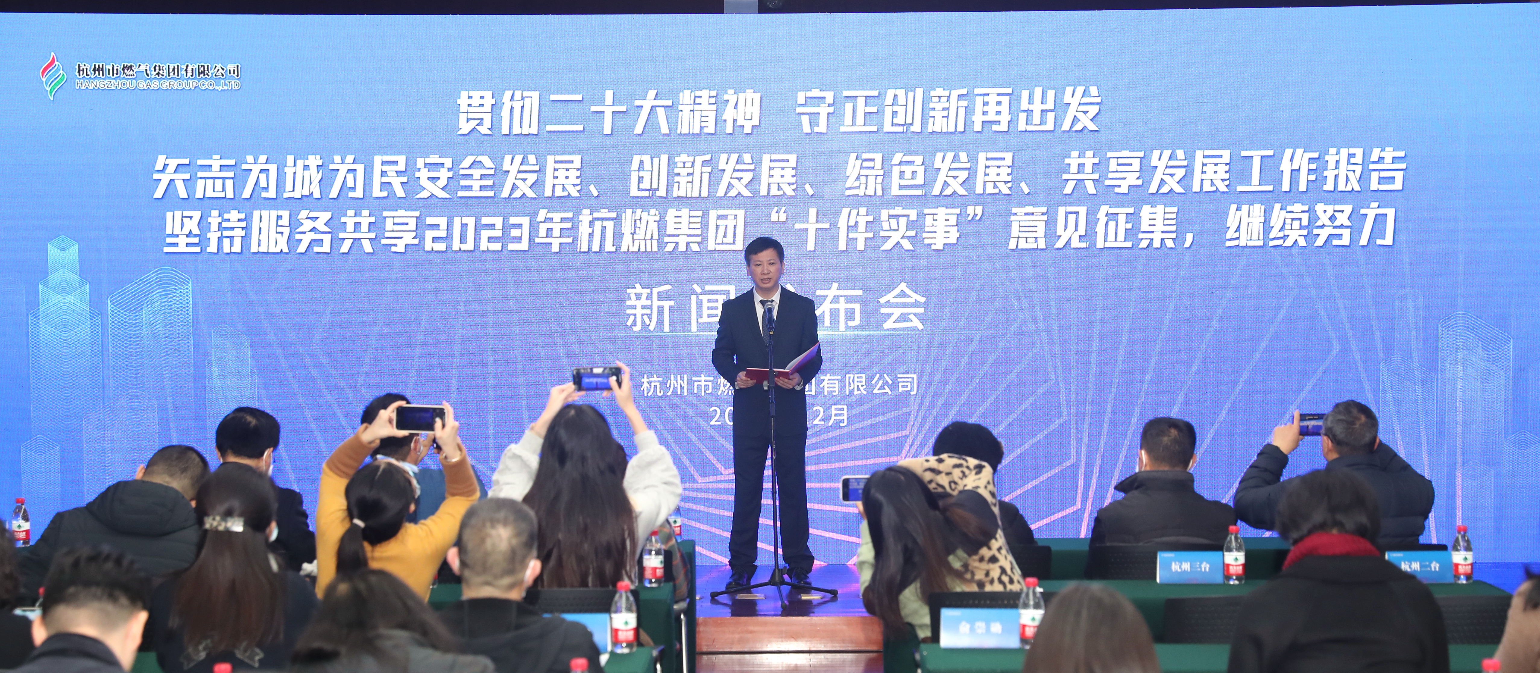 2022年12月8日上午,欧美成人视频 召开“贯彻二十大精神守正创新再出发 矢志为城为民安全发展、创新发展、绿色发展、共享发展工作报告暨坚持服务共享2023年欧美成人视频 ‘十件实事’意见征集,继续努力”新闻发布会。来自杭州市城乡建设委员会、杭州市城投集团、华润燃气东南大区、杭州市城乡设计院的领导;品质监督员代表,用户代表,欧美成人视频 全体领导班子、各部室主要负责人,全资参控股企业党政主要负责人,以及省市媒体参加。欧美成人视频 党委委员、副总经理徐小冬主持新闻发布。