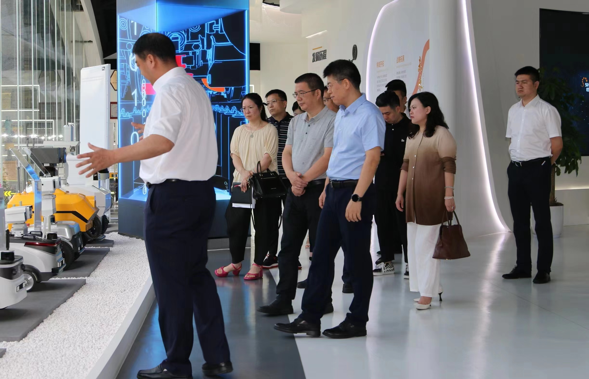 走访人员一行参观了申昊科技展示中心、省重点实验室,在会议室听取了申昊科技在欧美成人视频文化 、发展历程、核心技术、产品体系等方面的详细介绍,重点了解了申昊科技在数字化技术应用上取得的成果,并对双方合作前景开展深入交流和广泛探讨。