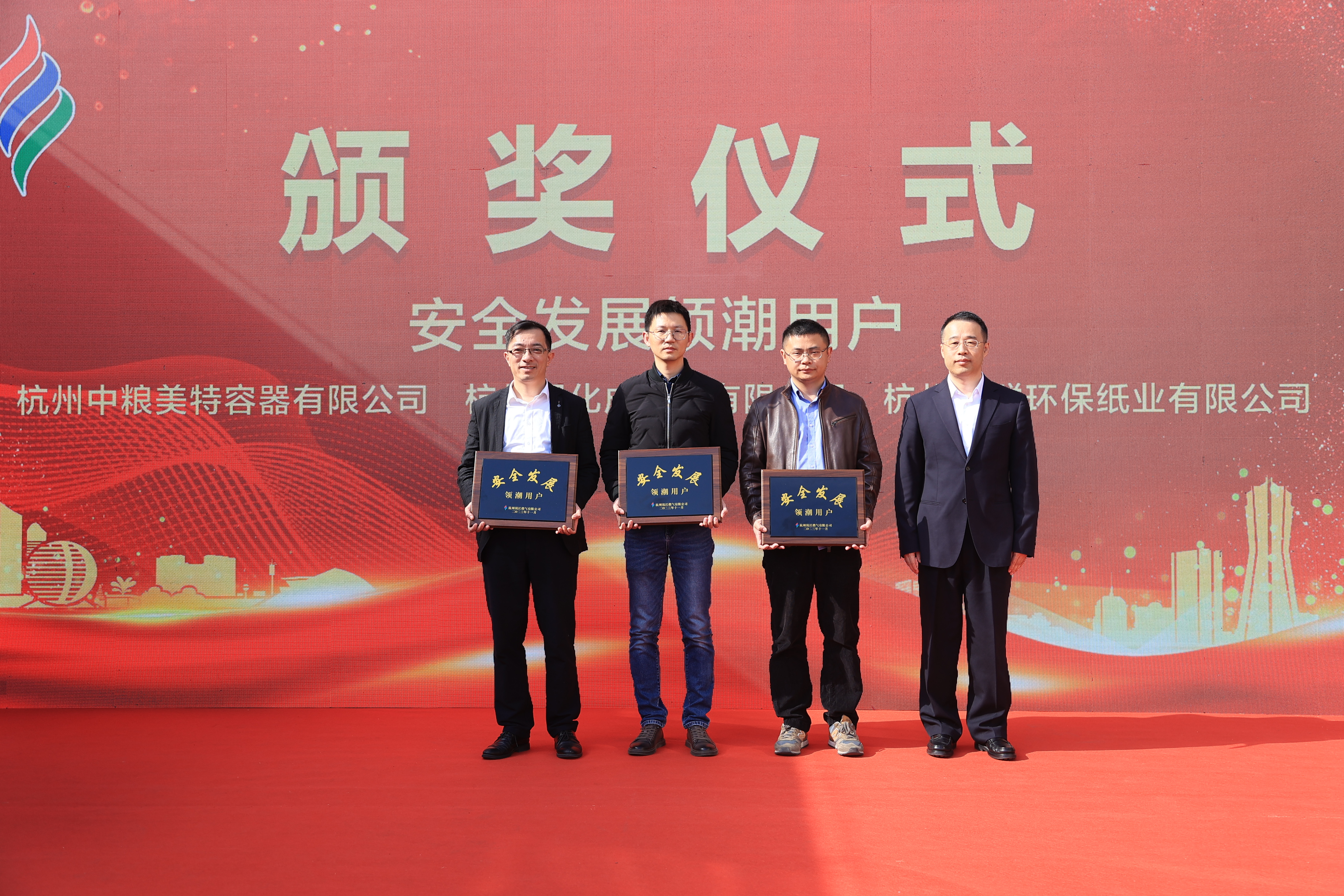 钱江公司总经理何香就过去的三十年钱江公司所取得的发展成就作致辞和企业社会责任报告发布,从六大治理责任、六大治理目标阐述责任管理“风火轮”,展现钱江公司牢守“上为政府分忧,下为百姓解难”的社会职责以及与时俱进的优质杭燃服务。随后,公司为领潮用户授牌颁奖,用户代表上台分享合作历程。同时,进行两项综合智慧能源新合作项目的启动仪式。