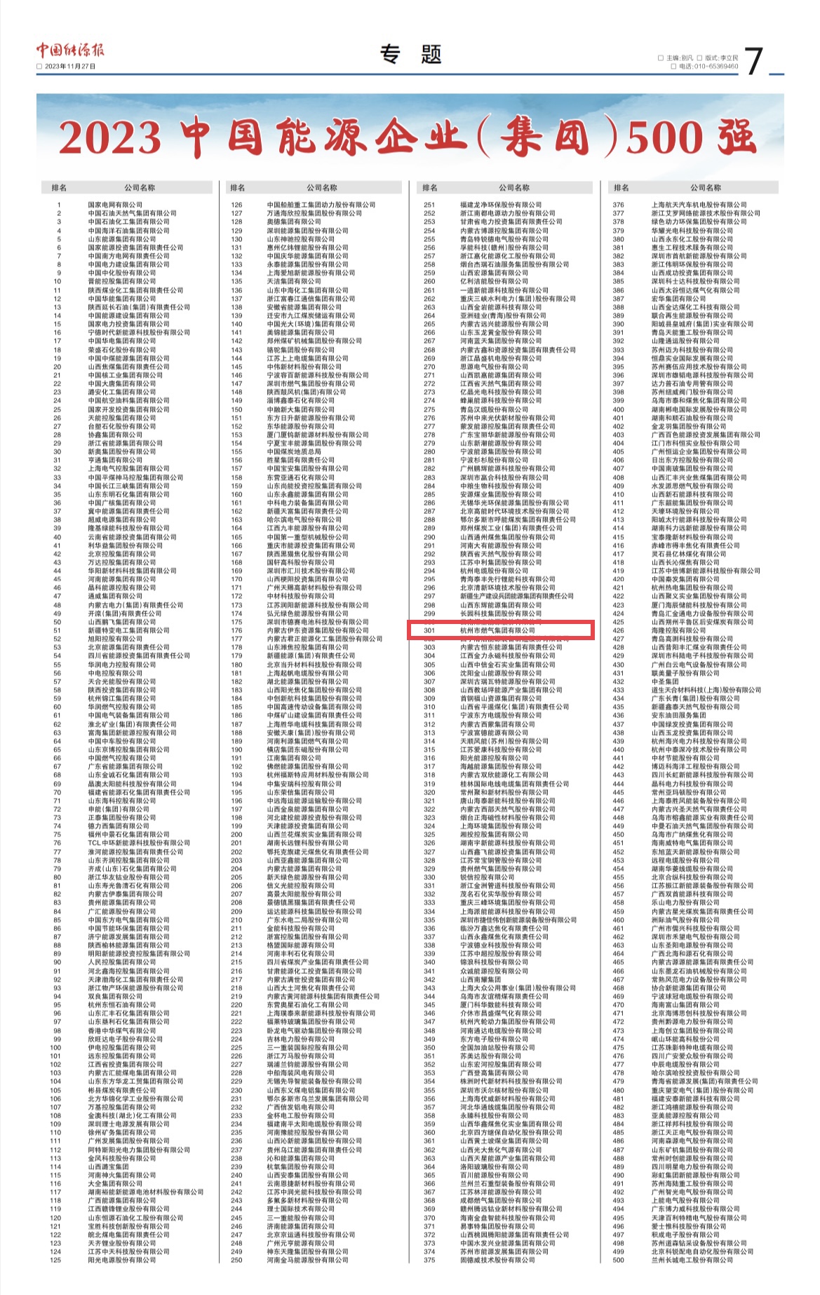 再次入榜,排名第301位,较上年排名大幅攀升36位!
