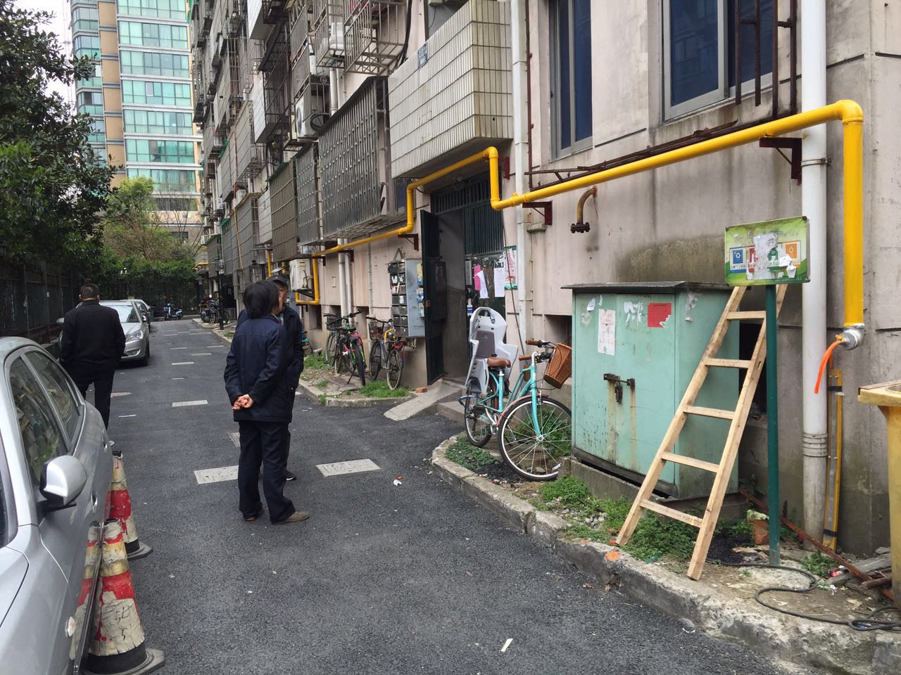在滨江恒丰坊改造前夕,杭天公司吸取去年静安、静怡花苑改造经验,提前准备,一方面与社区保持紧密联系,做好相关用户的协调解释工作;另一方面与城乡计院对接,结合设计图纸制定改造方案,组织施工力量。施工过程中,施工人员速战速决,齐心协力克服多日降雨天气、保笼多、结构复杂等因素,历时5天,顺利完成132米长的架空管线安装。