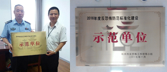 近日,杭州市反恐怖工作领导小组授予杭天高压储配分公司“2016年度反恐怖防范标准化建设示范单位”荣誉称号。这是继4座高压门站和西部应急气源站获得2015年度反恐怖防范标准化建设示范单位后分公司的又一次荣誉。