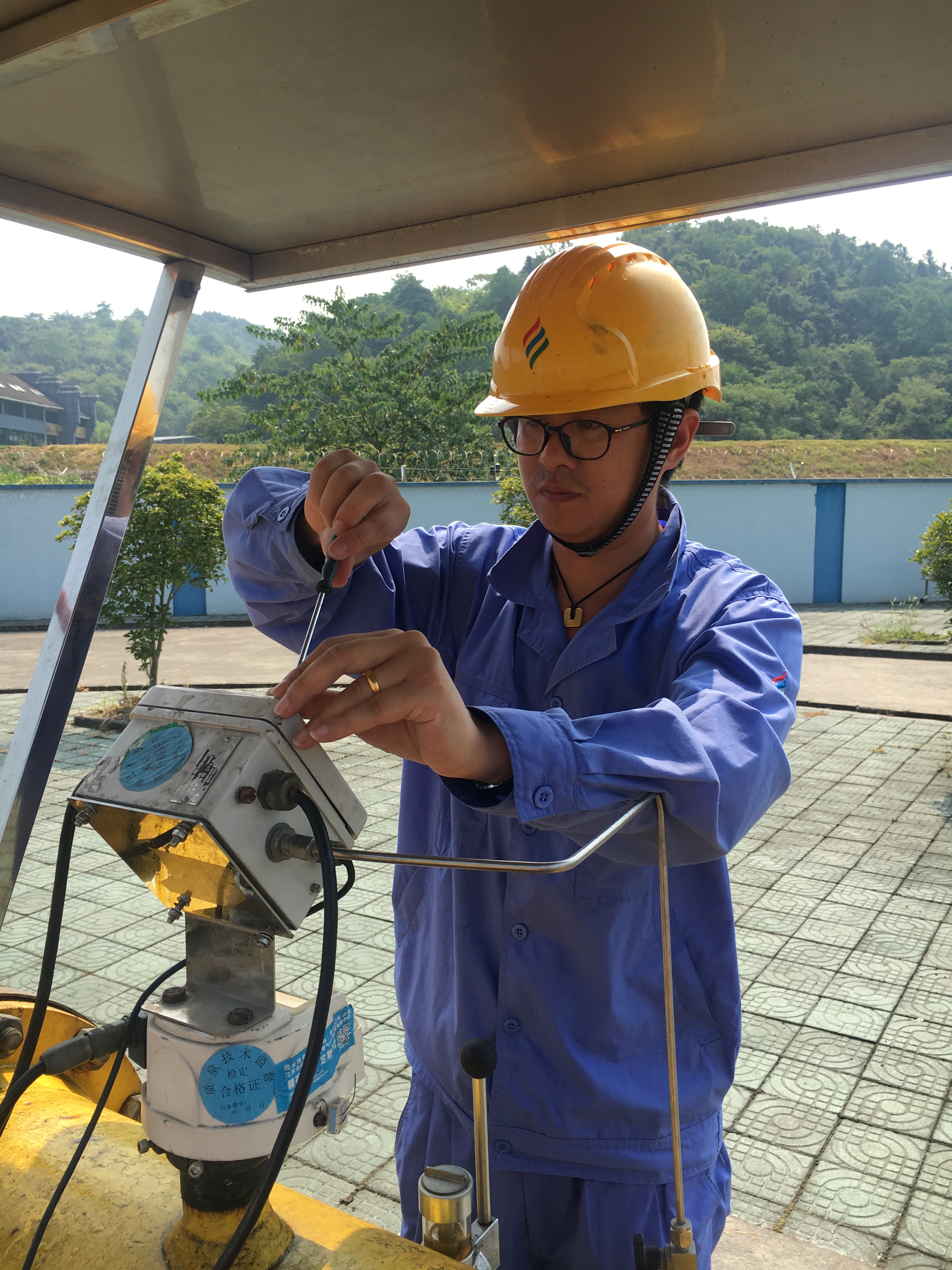 新登高中压调压站因位于山坡边,地势较低,一遇大雨站内就会出现积水现象,对场站围墙、RTU房及站内的电气设备造成一定影响,存在安全隐患。为了防患于未然,6月19日起,杭天高压储配分公司结合“清洁工场”工作,委托第三方施工单位对新登站及富阳1#阀室的地面及站外排水沟进行整治,并将现场监护任务交给了输配科维修五组组长钟高峰,近期连续出现的40℃高温天气,对于他来说,就是一个“烤”验。