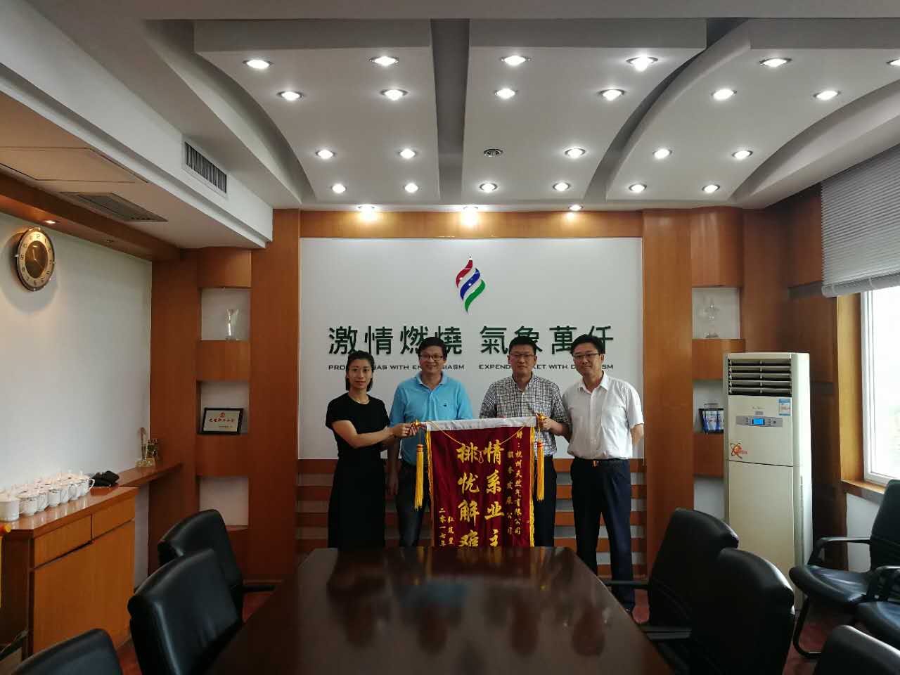 “你们的户内安装服务让我们见识了杭燃力量,正是有了你们的杭燃速度才保证我们能够如期交房,感谢你们。”近日,弘筑置业何经理一行将写着“情系业主,排忧解难”的锦旗送到杭天服务发展公司,对公司在天城府项目中周到贴心的户内安装服务表示感谢。