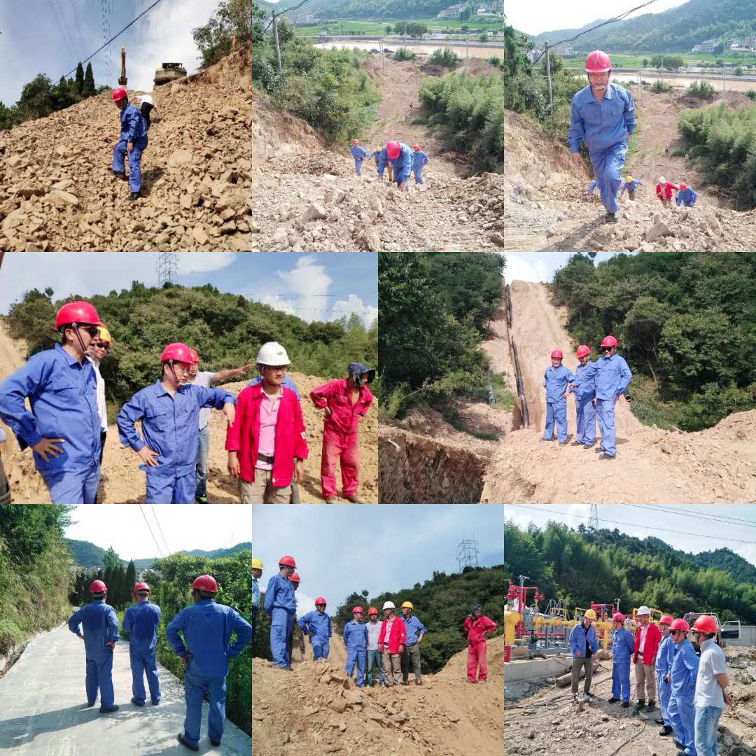 S18-1高压管道沿山而建,涉及山体6座,山高坡陡,施工难度大,王忠平在施工现场对照施工图纸,了解S18-1工程施工的关键节点及工程进展情况。随后与现场人员一起爬上陡峭的山体,到达山顶时早已汗流浃背,通过亲身体验进一步了解工程施工的艰难。在清渚溪、安钦线顶管现场,因顶出坑借地涉及30多户村民,加上村中的历史遗留问题,协调工作难上加难,不过在工程管理人员和村、镇近一个月的共同努力下终于取得突破,王忠平认真听取现场人员的汇报,感受着前期工作的不易,对大家的“钉子”精神表示赞赏,鼓励大家再接再厉;同时针对现场正在进行的深开挖施工,提出切实做好安全措施,做到警钟长鸣,确保施工安全的要求。在安仁阀室现场,王忠平仔细查看了管道、设备焊接、安装质量,嘱咐大家高压工程安全无小事,质量第一,并提出场站建设要与周围环境相融合。