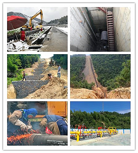 该工程虽总长度不长,但90%为山体段施工,山高坡陡,施工期间一遇下雨,山体湿滑,挖机无法在山坡上行走,施工难度极大。穿越工程其中120米需顶管穿越清渚溪和公路安钦线,沉井深度达11米,地质条件为岩石,施工难度和施工风险大。因山体连续,山体间没有进场道路,只能使用挖掘机在山坡上接力完成管材运输,最远时钢管需翻越四座山,运输距离达1800多米,最多时有四台挖机接力运输。在集团、杭天公司的领导下,各参建单位通力合作,工程建设者们克服重重困难,战风雪、顶烈日、爬山坡,积极推进前期协调,抓好现场施工管理,攻坚克难,历时9个月完成全线施工,同步完成安仁阀室的建设,管道天然气成功挺进建德。