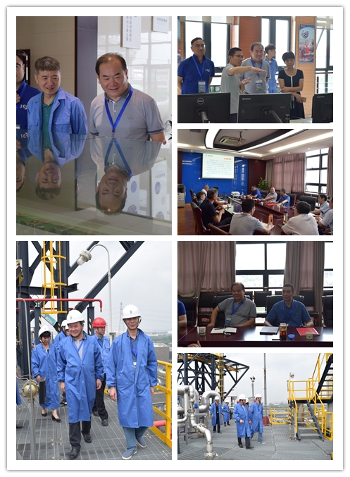 卢智宏总经理一行参观了东部站沙盘陈列区、中控室、现场工艺区,并登上“杭州第一罐”,详细了解了LNG卸液、存储、外供工艺流程以及高压管网系统总体情况。