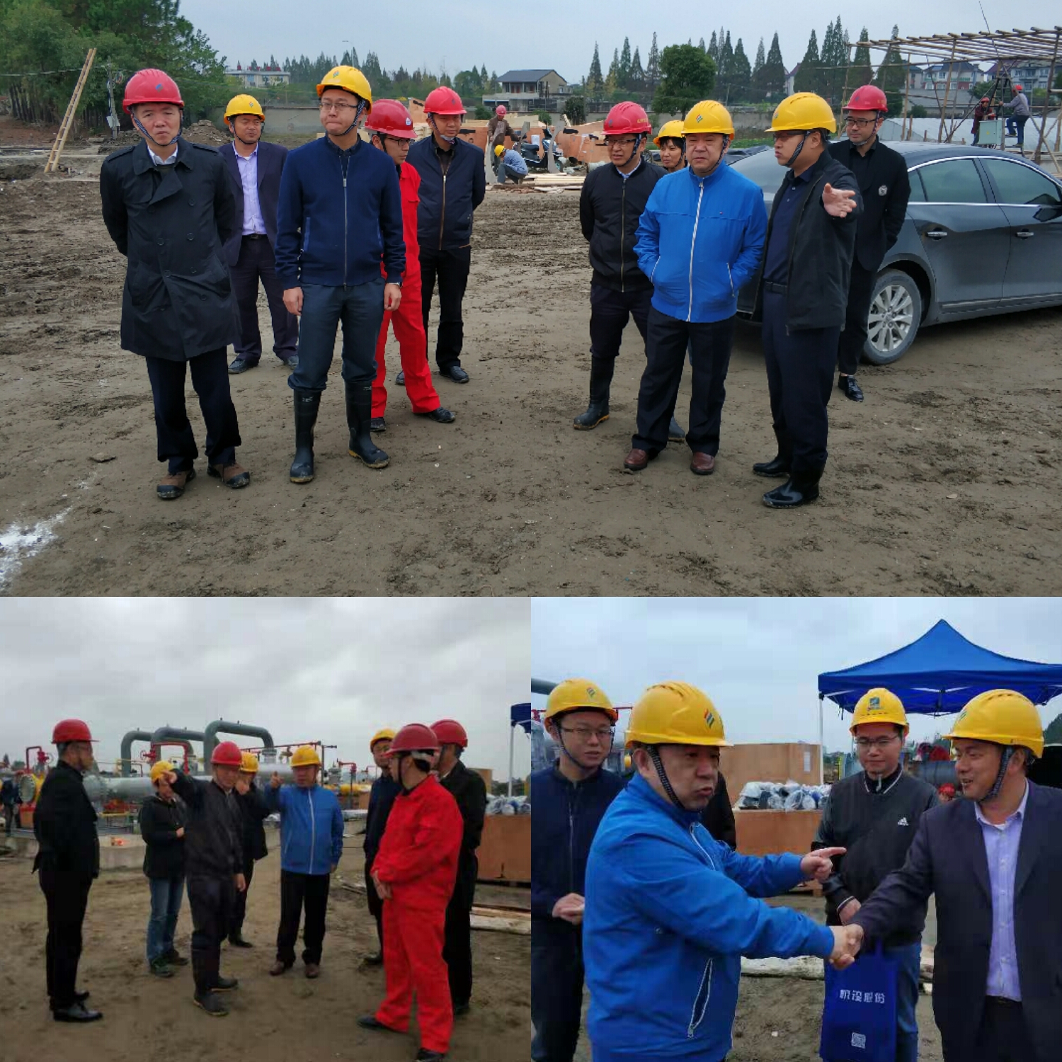党委书记、董事长芦俊,副总经理王忠平、总经理助理俞峻,杭天公司总经理沈剑平等一行对S11江北阀室工程项目施工进行现场踏勘指导。