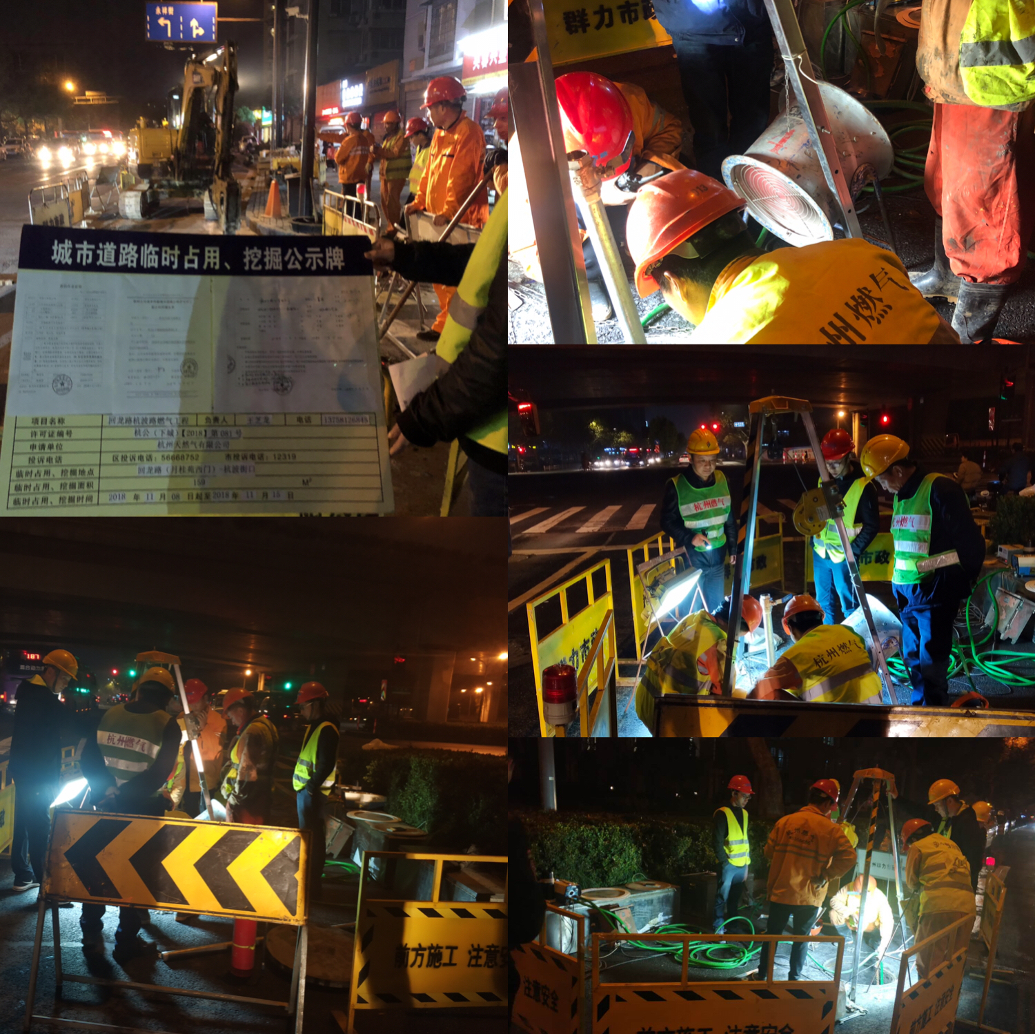 工程施工在城区老道路上,交通流量大、地下管网多,施工员、工程前期人员在多次实地踏勘的基础上,及时与市政、交警部门及相邻管线单位沟通,完成相关前期审批。11月8日,正式进场施工后,在不影响交通及减少影响周边居民休息的情况下,合理安排施工机械,全部夜间施工;由于北景园月桂苑西门为该小区唯一车辆进出大门,分公司根据现场情况不断优化施工方案,保证施工期间小区车辆的正常通行,为保证冬季用气高峰前完成该工程,连日下雨不停工,11月13日完成所有地下管道的铺设;15日夜间开始新老管线割接,至次日凌晨四点半完成。该区块地下中压管网环通后,将惠及杭玻街(石桥路~沈半路)两侧用户、东新路(石桥路~北景春天)两侧用户等8000多户居民。