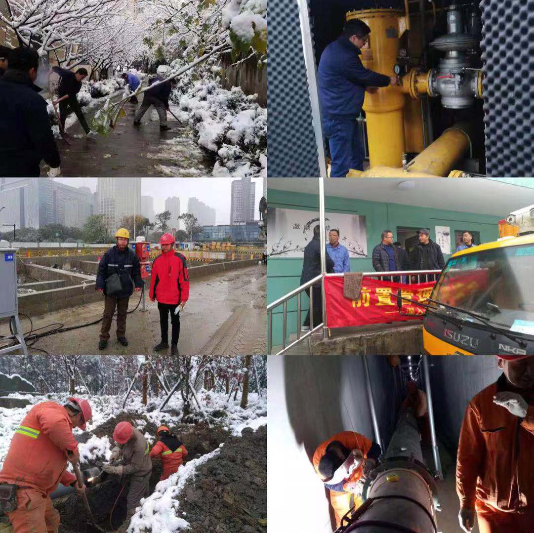 12月9日,星期日,分公司各岗位人员坚守岗位,各司其职。一大早,在岗值守的党团员自发对工作区域内的道路进行扫雪除冰,确保生产车辆和人员的安全有序通行;巡检巡护人员加强地铁站点、隧道等大型施工区域的监护与检查,落实好世游赛重点区域钱江新城与滨江二通道(江北段)等重点道路管网设施的巡检查漏;施工员徐佶斌冒雪坚守在329国道上过河桥管和德胜路综合管廊Ⅰ标中压燃气管道施工现场,管廊内3014米管道全部施工完毕;调压班在班长沈卫国、程宗立的带领下,在零下2度的严寒中,对中中压调压设备运行状况进行检查确认,并对庆春路、莫干山路中-中压等调压器进行现场检查,保证调压设备安全稳定运行;抢修人员备足各类抢修用备品备件等物资,在各站点随时待命,先后完成严衙弄社区引入管、莲花新村引入管等处抢修,寒风卷着大雪让抢修队员成了一个个忙碌的“活动雪人”,交织成一幅幅动人的抗雪保供画面;分公司领导干部严格执行在岗值班制度,经理俞峻、副经理沈洪定来到水湘抢修点(世泳赛保障点)与大家一起值守,叮嘱大家在做好世泳赛保障、防雪抗冻工作的同时,注意行车安全和个人防寒保暖工作。