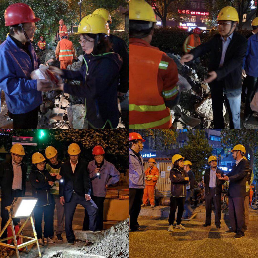 翻建管道位于市中心主干道,交通压力巨大,且管线长达600多米。面对任务重、要求高和夜间施工等困难,分公司联系交警、城管等部门多次现场踏勘,制定《交改方案》,明确各项安全文明施工措施。开工后,又狠抓现场管理,强调反光背心、安全帽、警示红灯等安全设施一样都不能少。经过12个夜晚的连续奋战,于4月17日凌晨四点半成功实施新旧管线割接,朝晖路抢修翻建工作圆满完成。期间,集团副总经理朱琴君、杭天公司领导及分公司领导多次到现场指挥和慰问。