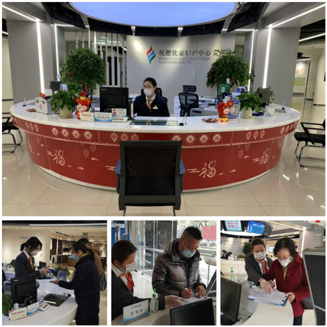 围绕“防疫情、保安全、稳生产、优服务”,客户中心积极落实与配合疫情防控工作,在继续强化服务意识,优化服务质量,认真做好客户服务工作的同时,实行营业厅内“人防、物防、制防”的三防措施,全面抓好窗口防疫工作,确保疫情防控期间防疫不放松、服务不缺位,为用户与员工的生命健康和安全环境提供了坚实的保障。杭燃优家客户服务中心(天目山路旗舰店)的姐妹花们也用实际行动践行着责任与担当,在浙江启动公共卫生事件一级响应的40天里,她们怀着坚定的信念,舍小家为大家,始终战斗在窗口服务第一线,用最专注的态度和最热情的服务迎接每一位用户,为他们提供最优质的燃气保障服务,用温暖贴心回馈用户。