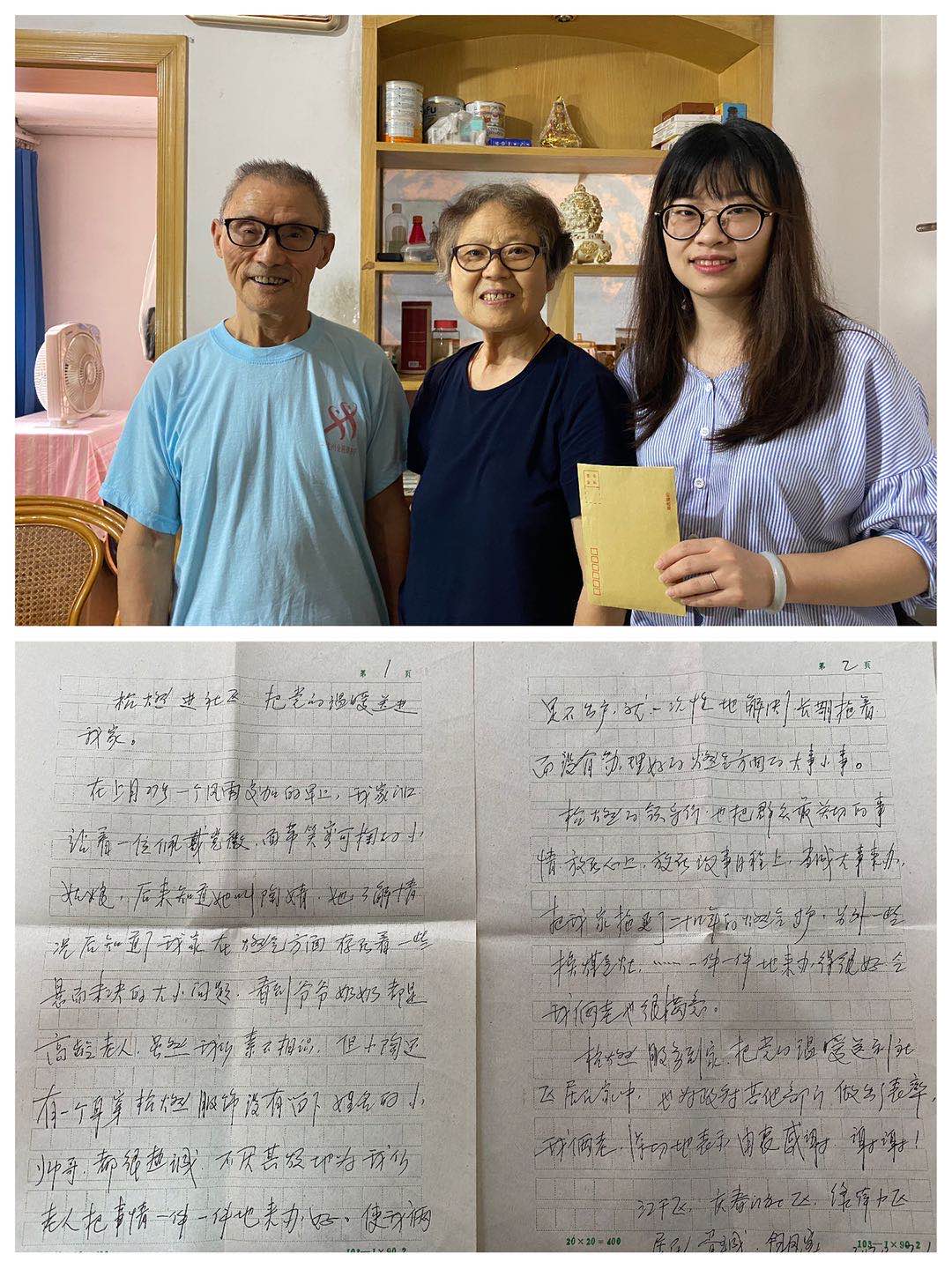 管网输配分公司收到了一封来自采荷绿萍小区八旬老人钮奶奶、胥爷爷的感谢信,对公司“三社联动、安心安居”活动表示高度肯定,并对当日志愿者陶婧等人的贴心服务表示由衷感谢。