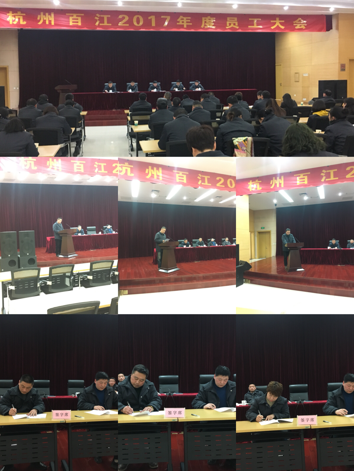 2月2日上午,杭州百江在七堡3号楼召开2017年度员工大会,会议由张洪华副总经理主持,公司领导班子、各部室负责人、管理人员、班组长、职工代表等共百余人参加会议。