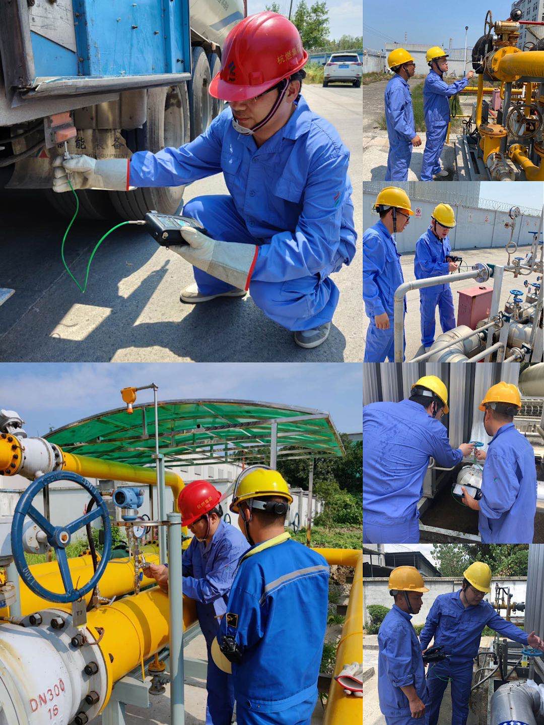 同一时间另两位“新进员工”也体验着同样的“烤”验。在聚和顺场站卸液过程中,顾建余保持谦虚求知的姿态向经验丰富的操作人员请教,并与场站员工共同探讨如何提高卸液效率,通过亲身实际操作了解一线的基础操作、基础安全管理,了解LNG气化站最真实的运行情况。午休时间,他和工人们一起吃饭,拉家常,叮嘱员工在做好本职工作的同时一定要劳逸结合,平安度夏。在桐庐富强LNG站中,余晓明经过简单的岗前安全培训,跟随运行人员进行日常巡检巡护,小到一颗螺丝,大到LNG储罐每个细节都提出了自己的见解与看法,并与巡检巡护人员进行深入探讨已达到最高效的运行效果。同时为一线员工们带去了慰问品,送去了清凉。