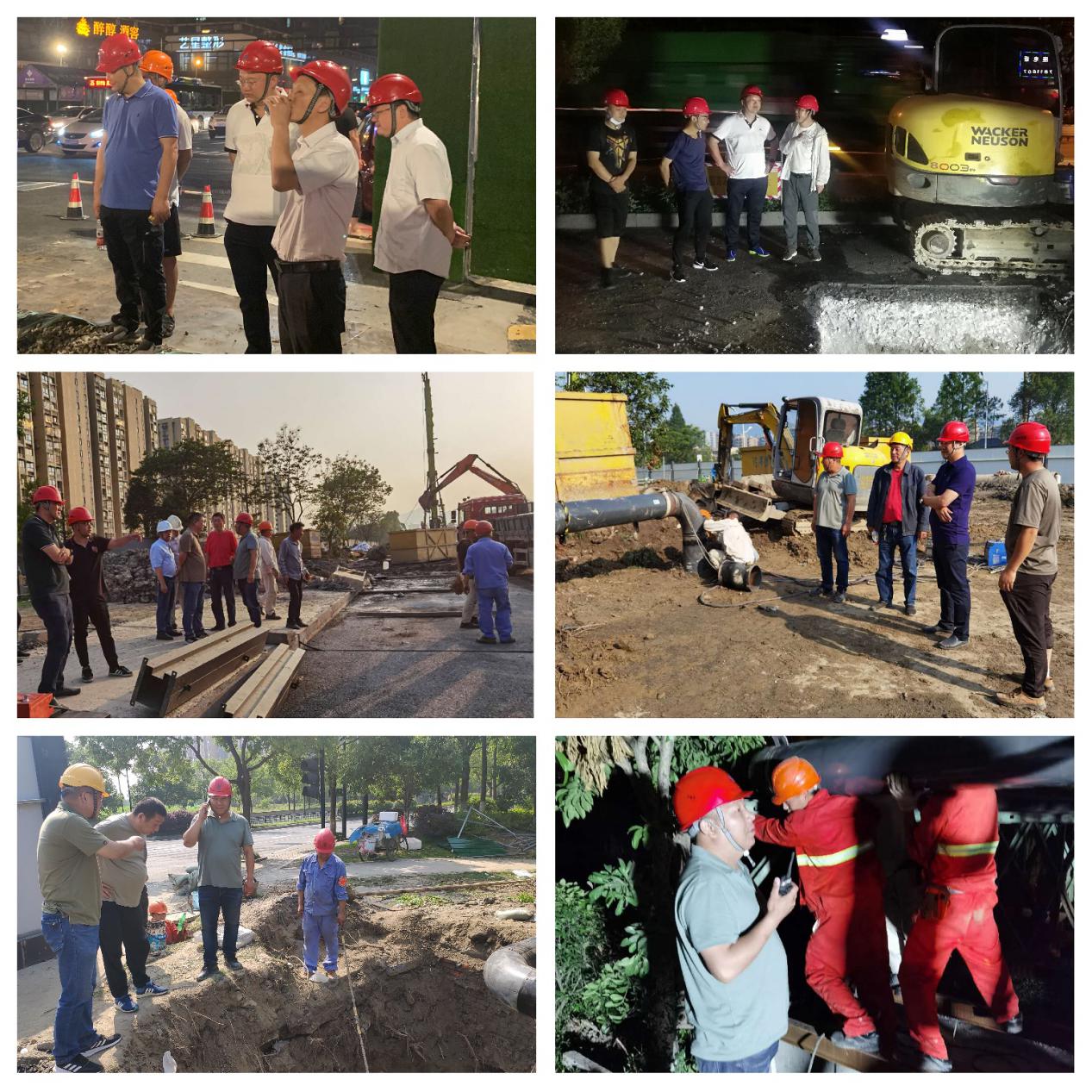 5月23日12时10分左右,天都路临丁路口因道路主体施工造成中压燃气主管破损,一度造成杭州港华供气紧张。15时12分,工程公司接到杭天管网输配分公司下达的紧急抢修任务指令后,党支部书记、总经理冯其栋立即落实工程管理部经理吴晓荣安排地铁项目部、项目五部快速执行抢修任务,并从安吉先锋连春训地赶赴抢修现场亲自指挥。地铁项目部项目经理范建强、项目五部项目副经理赵从静接到指令后,在从安吉返杭途中即完成管材、土方、吊装等抢修力量协调、集结工作。待抢修人员到达现场后,根据确定的抢修方案,完成安全技术交底,明确现场分工和工作要求。16点30分起,开挖割接点、预置过桥架管、插盲板、吊装桁架管、氮气吹扫、动火割接等一系列作业紧张、有序推进。经过19个小时昼夜连续奋战,至5月24日9时55分完成割接置换通气,抢修任务结束,比预计恢复通气时间提前8个多小时。