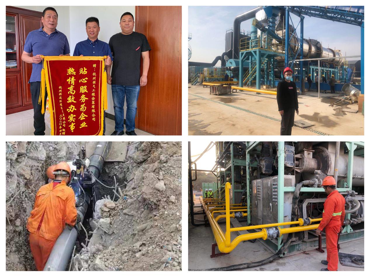 杭州科运环境技术有限公司专注于土壤环境综合治理。杭钢半山基地关停后,为保护和利用其工业遗存,科运环境进驻杭钢土壤治理厂区进行污染土壤修复工作。厂区内的挥发性有机污染物土壤需利用焚烧法进行修复,而焚烧土壤所使用的燃烧器则需要接通天然气作为动力。同为肩负“绿水青山就是金山银山”发展使命的工程公司义不容辞来助科运环境一臂之力。