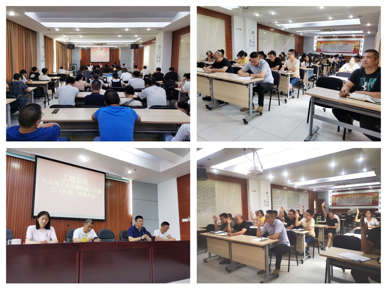8月24日下午,工程公司于海月基地西四楼会议室召开8月份员工大会暨四届二次职工(会员)代表大会,公司领导班子、劳模工匠、各部门负责人、职工代表及劳务班组长共计70余人参加,会议由党支部书记、总经理冯其栋主持。