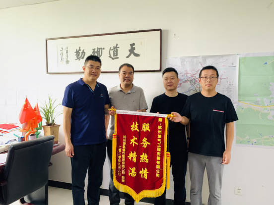9月11日下午,杭州袋鼠餐饮管理有限公司总经理杨宏坤带着锦旗“服务热情,技术精湛”专程赶来,对工程公司项目四部的施工服务表示感谢,党支部书记、总经理冯其栋代表公司感谢袋鼠餐饮对我们工作的支持和肯定。