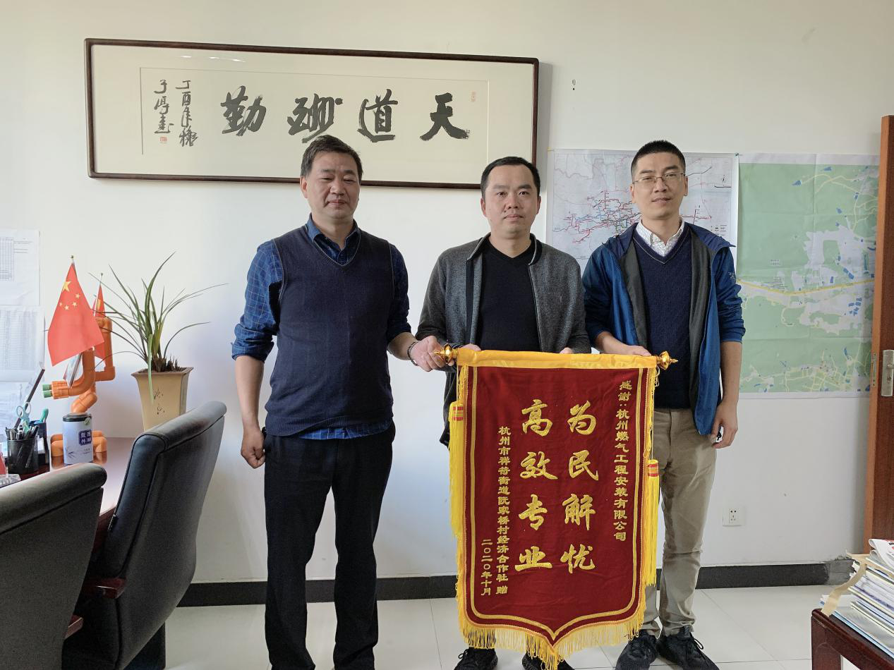 11月5日下午,杭州市拱墅区祥符街道阮家桥社区主任张国中带着锦旗“为民解忧,高效专业”专程赶来,对工程公司项目二部的施工服务表示感谢,副总经理朱国军代表公司感谢阮家桥社区对我们工作的支持和肯定。