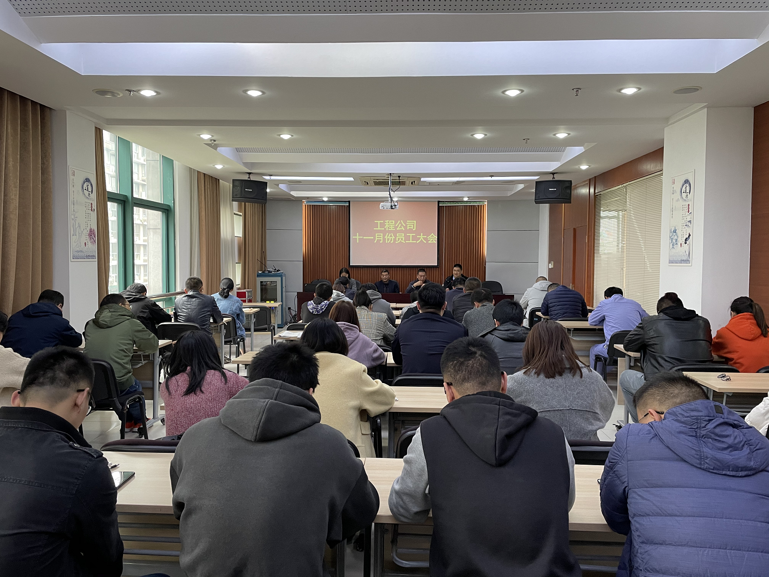 为进一步做好“防疫情,保安全,稳生产,优服务”各项保障工作,冲刺全年目标任务,11月26日下午,工程公司于海月基地西四楼会议室召开11月员工大会,公司领导班子、各部门负责人、职工代表及劳务班组长共计70余人参加,会议由党支部书记、总经理冯其栋主持。