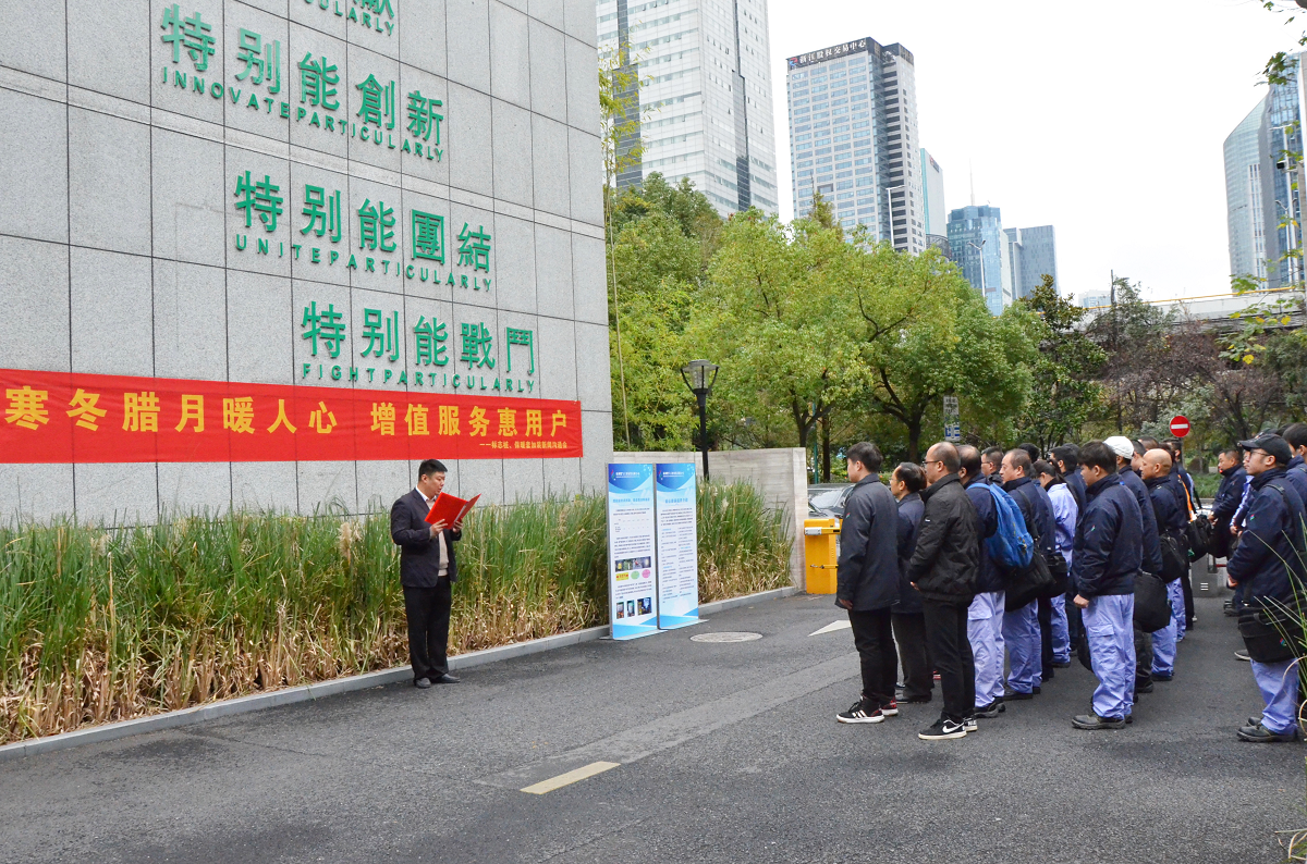 2020年11月27日上午,工程公司在清江路抢修服务中心召开“寒冬腊月暖人心,增值服务惠用户”非居民维保用户标志桩、保暖套加装服务新闻沟通会,公司领导班子、中层干部和职工代表参加。杭州二套、杭州日报等媒体记者进行现场报道。