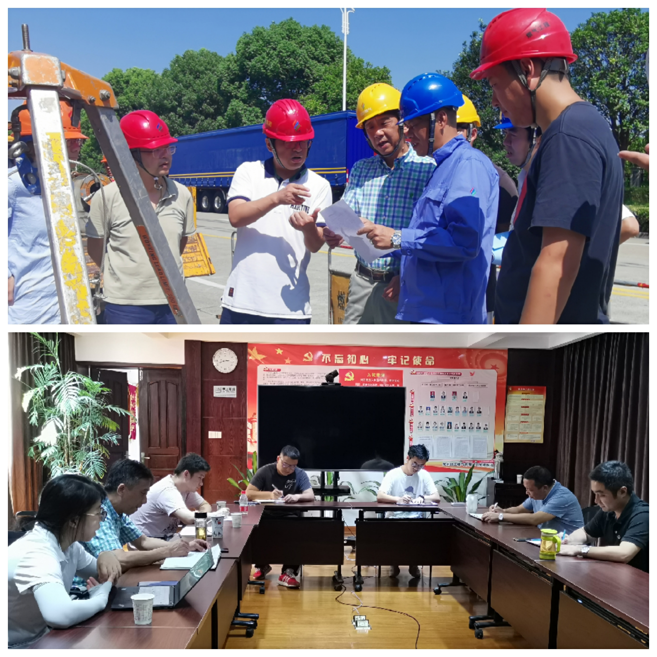 烈日炎炎下,检查人员前往耕德电子项目的下井盲板抽堵作业现场、海宁启辉路的道路改造现场开展安全检查,重点检查了施工现场管理的“七个一”落实情况及用电、消防情况。同时检查人员对星港综合服务厅及钱江公司内部的重点要害部位、仓库等地进行了细致查看,切实排除安全隐患。