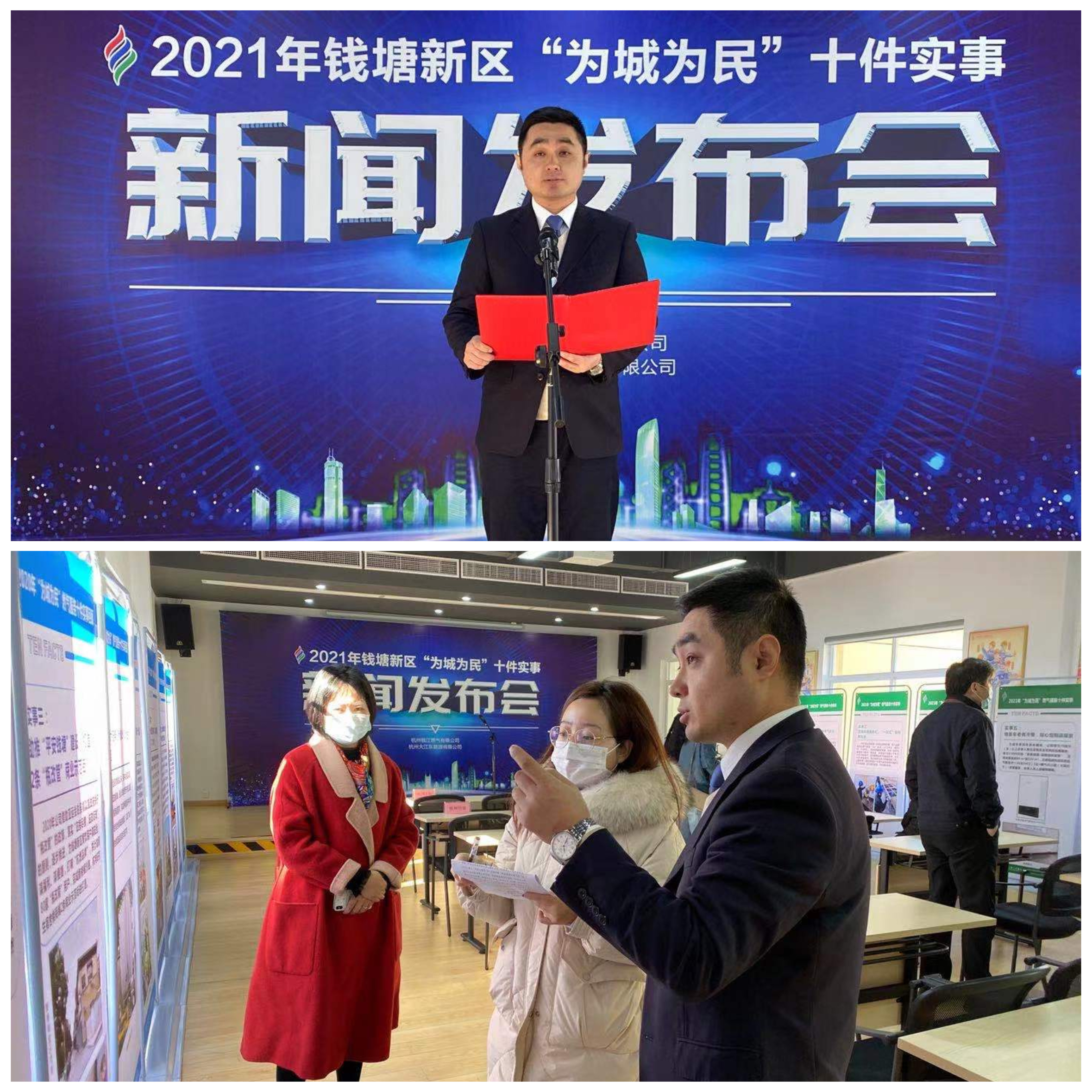 2021年是“十四五”规划的开局之年,作为新区两家国有燃气经营企业,1月14日上午,杭州钱江燃气有限公司和杭州大江东能源有限公司于钱江公司多功能厅联合召开2021年钱塘新区“为城为民”燃气服务十件实事发布会,杭州1台、杭州2台、杭州日报、钱江晚报等7家媒体受邀参加,发布会由大江东公司副总经理方辉主持,钱江公司总经理苏忠杰进行新闻发布。