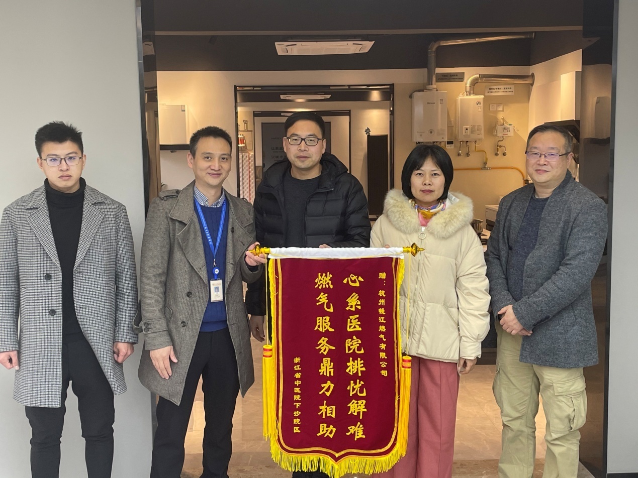 2021年1月25日下午,浙江省中医院将一面写着“心系医院排忧解难,燃气服务鼎力相助”的锦旗送到了钱江公司,衷心感谢钱江公司为支持医疗事业及保障疫情防控做出的贡献。