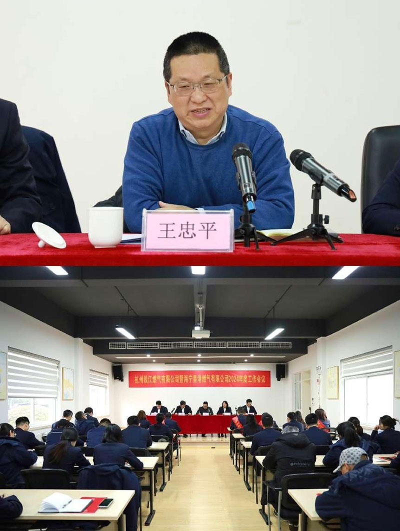 集团公司党委委员、副总经理王忠平对钱江公司在2023年各方面取得成绩给与充分肯定,从能源发展趋势到市场拓展方向,深度剖析公司内外形势,并对钱江公司新的一年工作提出三点要求:一是锁定目标落实责任,量化细化重点工作,公司全体干部员工必须高度重视、强化责任意识,攻坚克难,紧抓重点促发展;二是提升管理善作善成,高度重视合规性管理,提升创新安全服务,加大新能源新产业投资建设管理;三是党建引领人才队伍,全面落实党建任务及党建制度,推进党建与业务相结合,重点关注多层次多方位人才培养,发动青年员工能动性、创造性,推动燃气事业高质量发展。最后,王总就党风廉政建设给大家上了一堂廉政微党课,要求全体党员干部一要讲党性重品行,二要守纪律改作风,三要敢作为勇担当,勉励全体员工要树立“放下”的心态、“舍得”的境界、“廉洁”的风气。